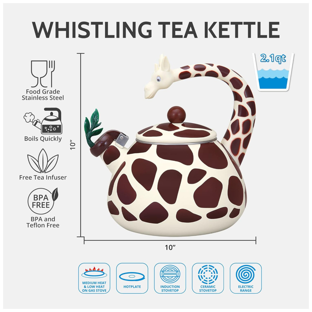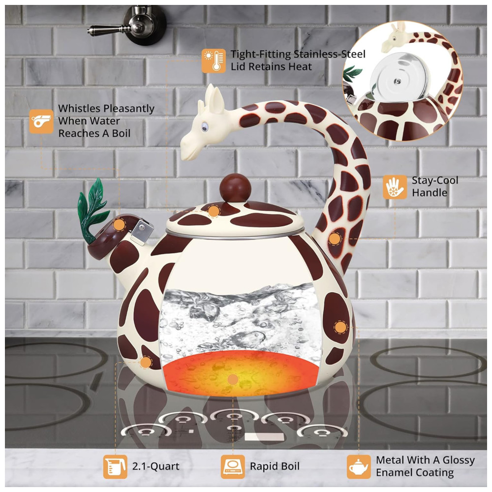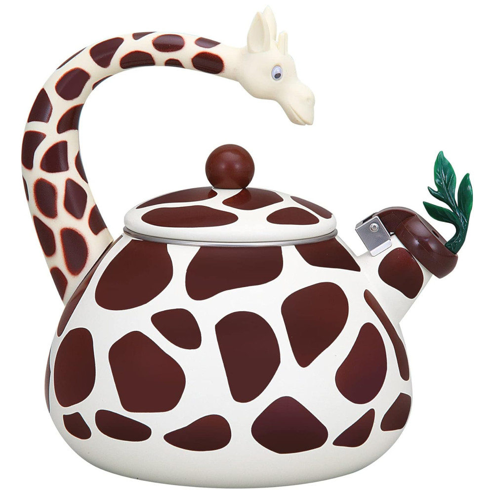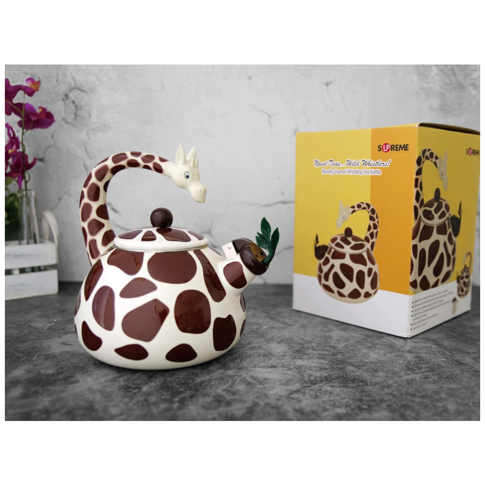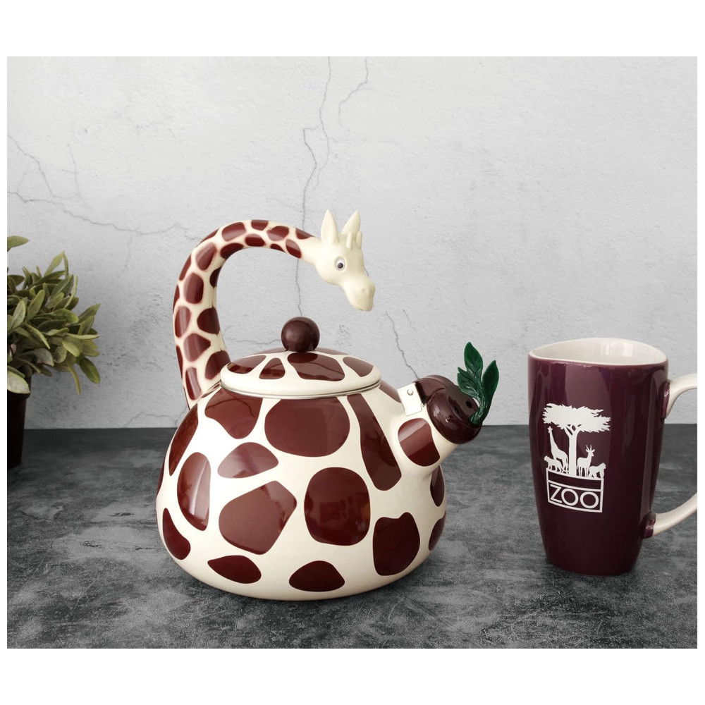 Chaleira de Chá 2.1 Litros em Esmalte com Apito UP Girafa Branca e Marrom