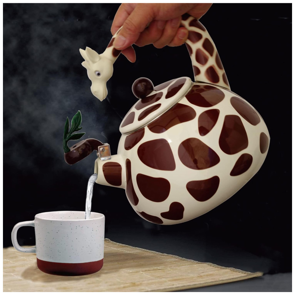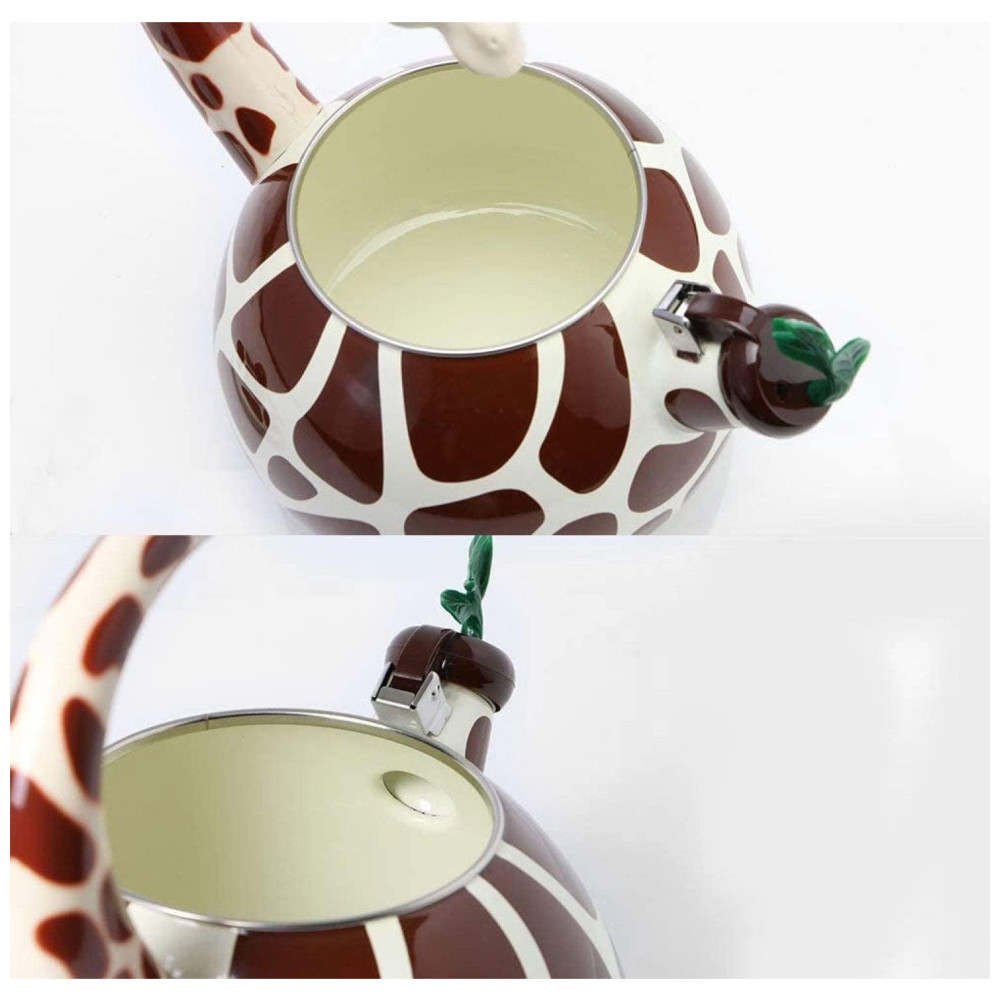 Apresentando a adorável chaleira esmaltada Giraffe. Escolha sua chaleira favorita hoje e aproveite sua vida na cozinha Com um design muito adorável, esta chaleira adicionará diversão à sua cozinha e trará um sorriso ao seu rosto sempre que você ferver água Esses designs vêm em uma linda caixa de presente, será uma ótima ideia de presente para o seu ente querido. É feito de esmalte sobre aço dentro e fora da chaleira. A alça, o bico e o botão da tampa são feitos de plástico durável