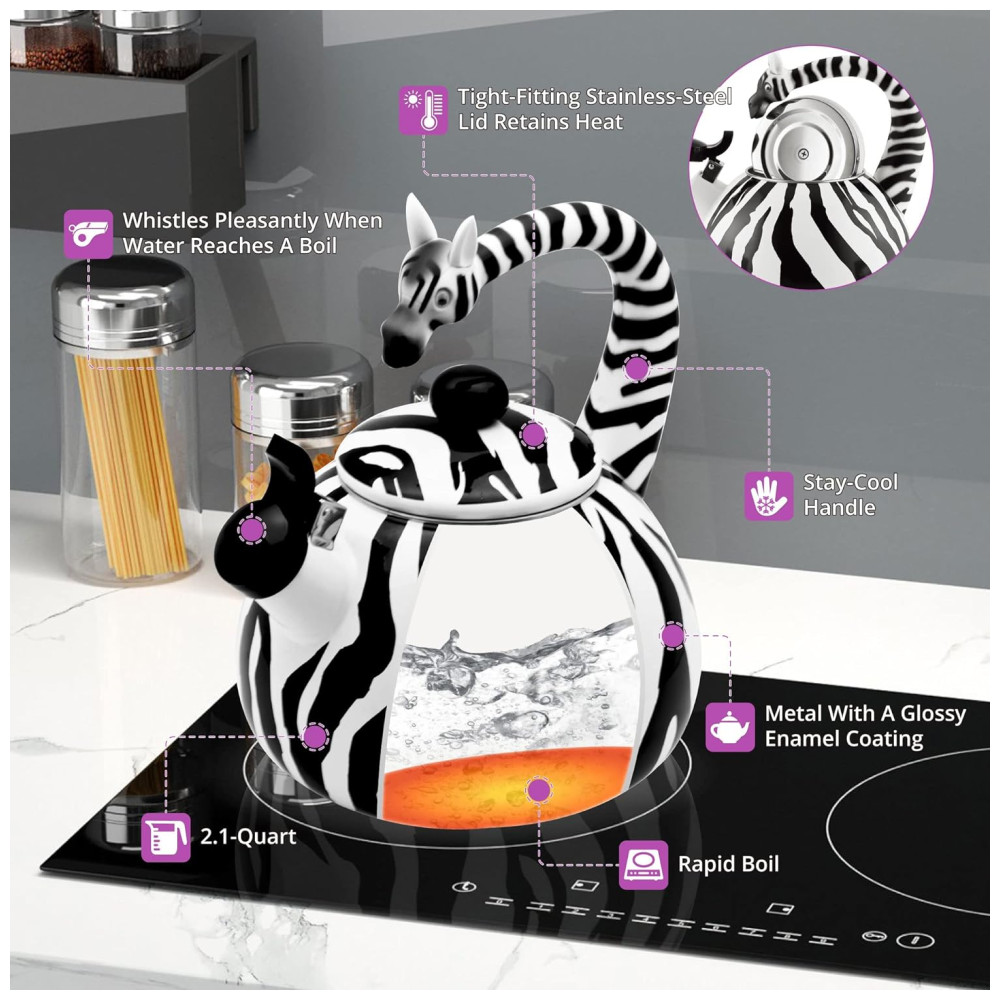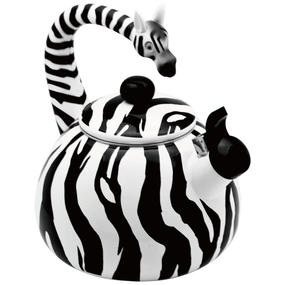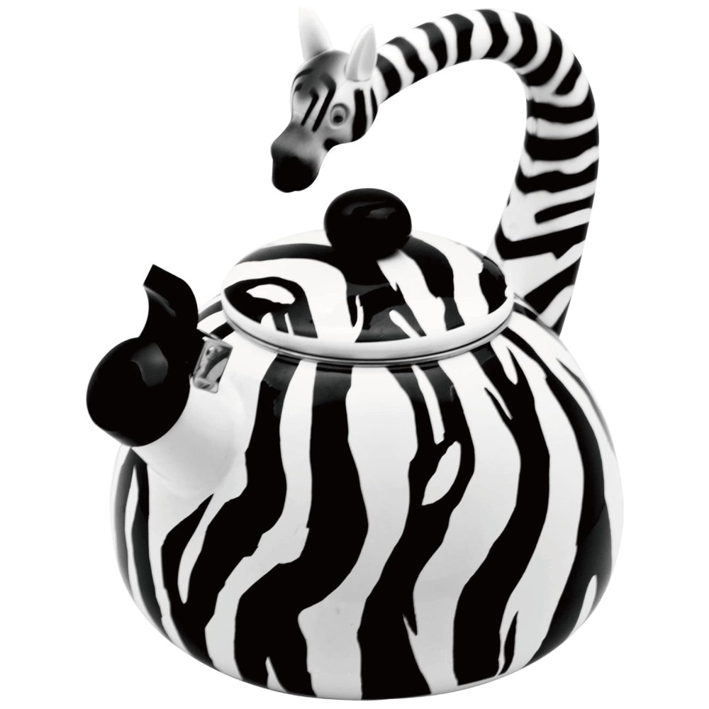 Chaleira de Chá 2.1 Litros em Esmalte com Apito UP Zebra Branca e Preto