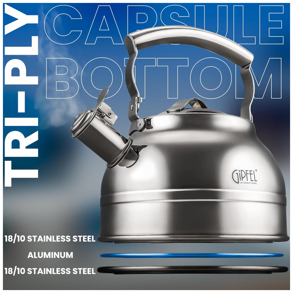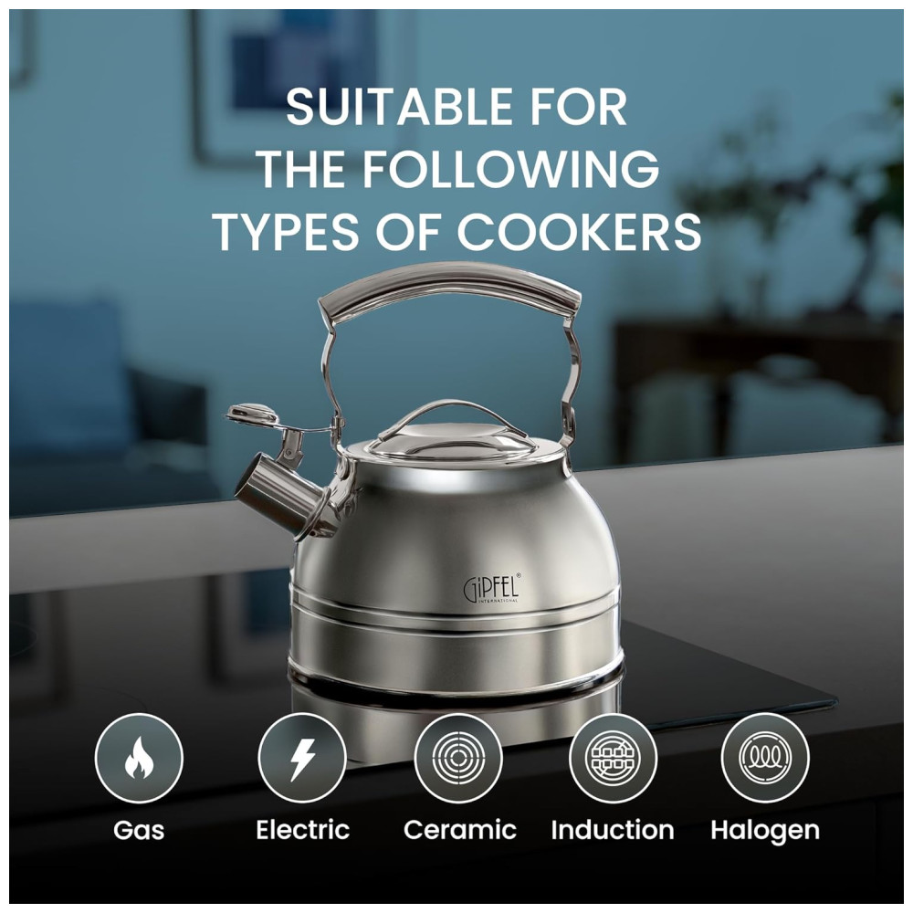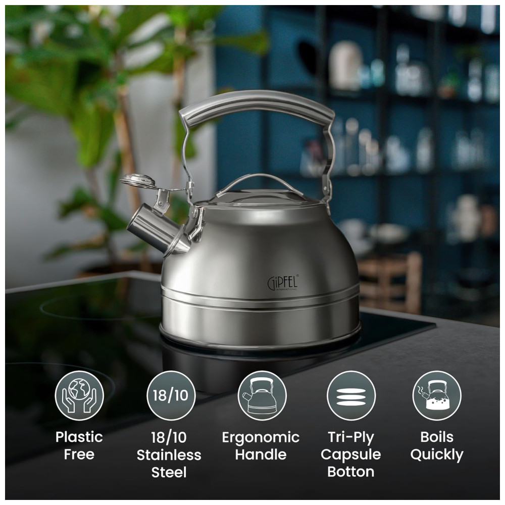 Chaleira de Chá 2.2L com Apito Aço Inoxidável GIPFEL INTERNATIONAL 1128 Prateado