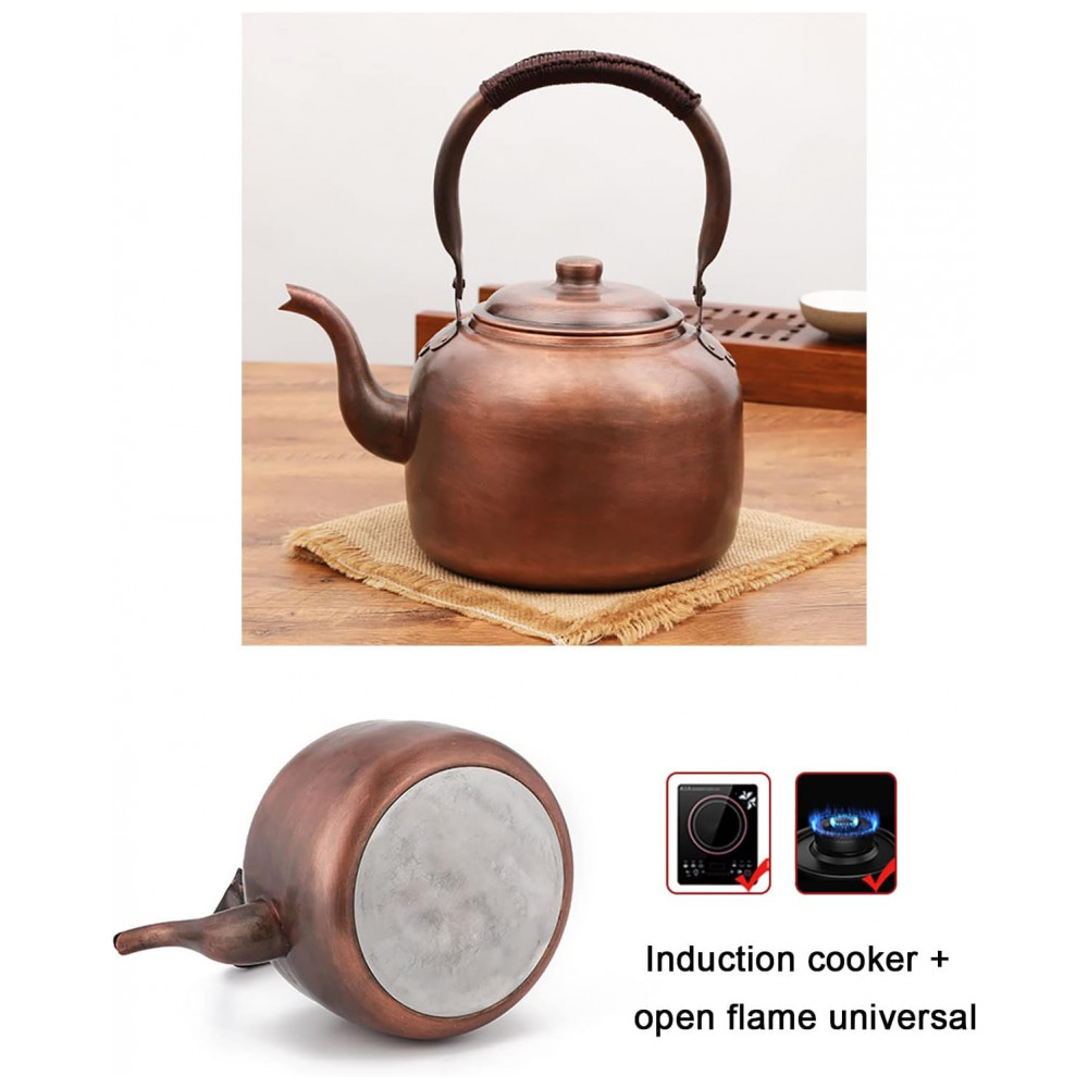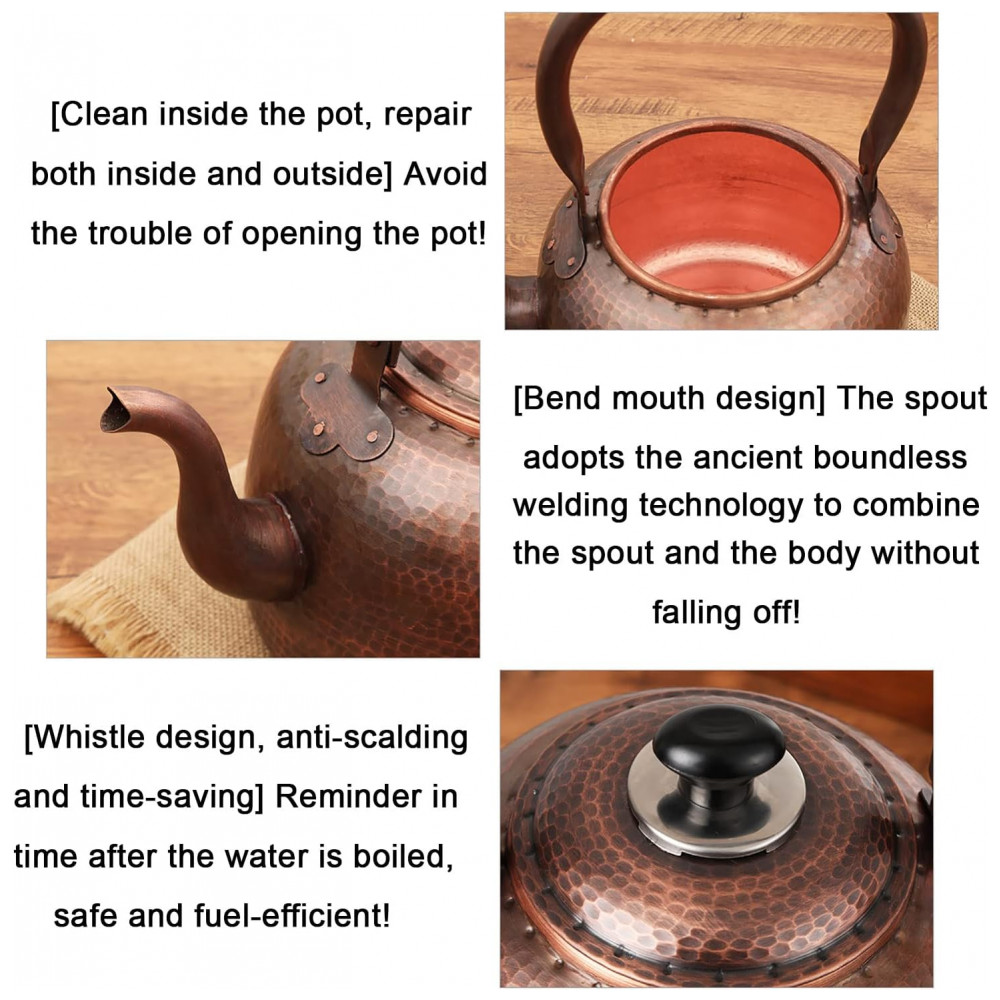 MATERIAIS PREMIUM O bule é feito de fundição de cobre profissional para garantir que seja à prova de ferrugem, anticorrosão, fácil de limpar e aquecimento rápido. Requintadamente polido por dentro e por fora