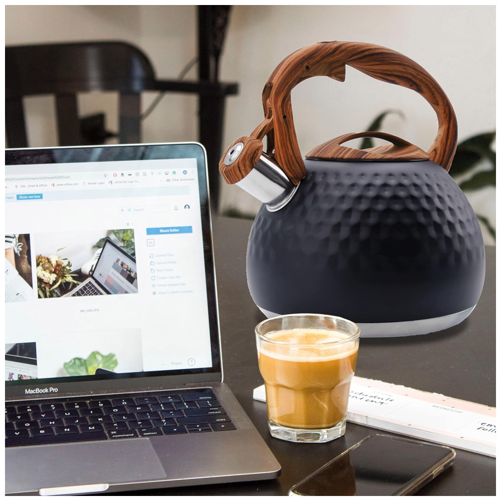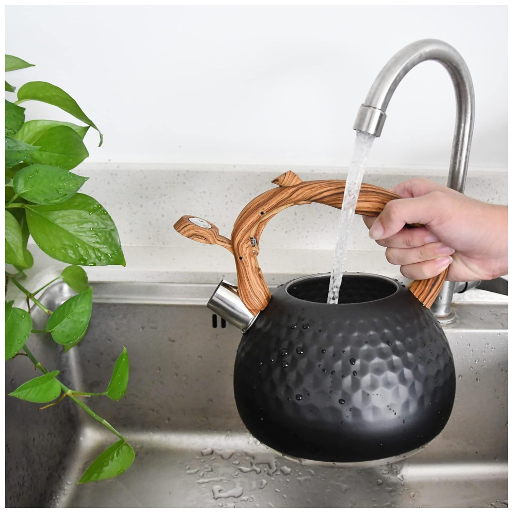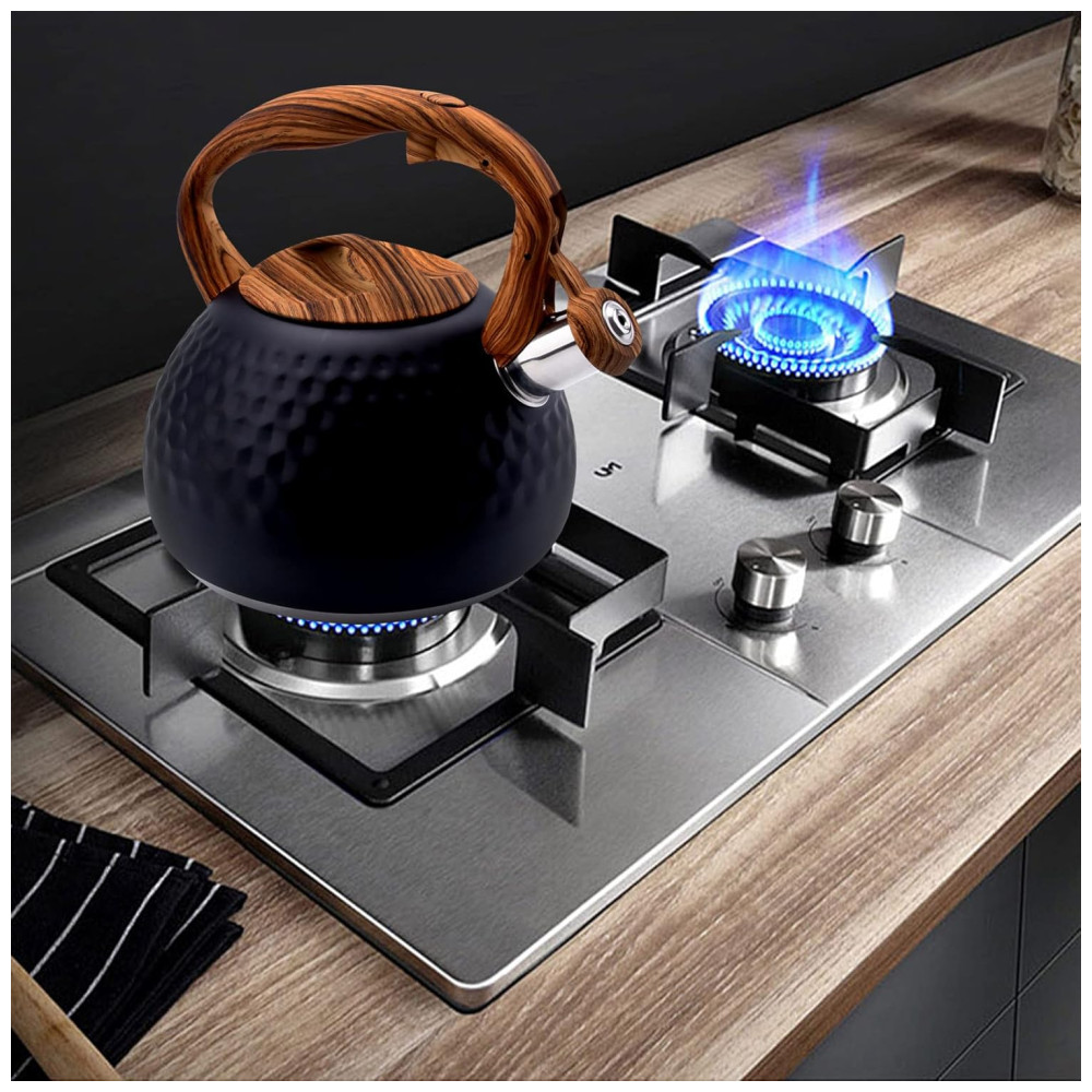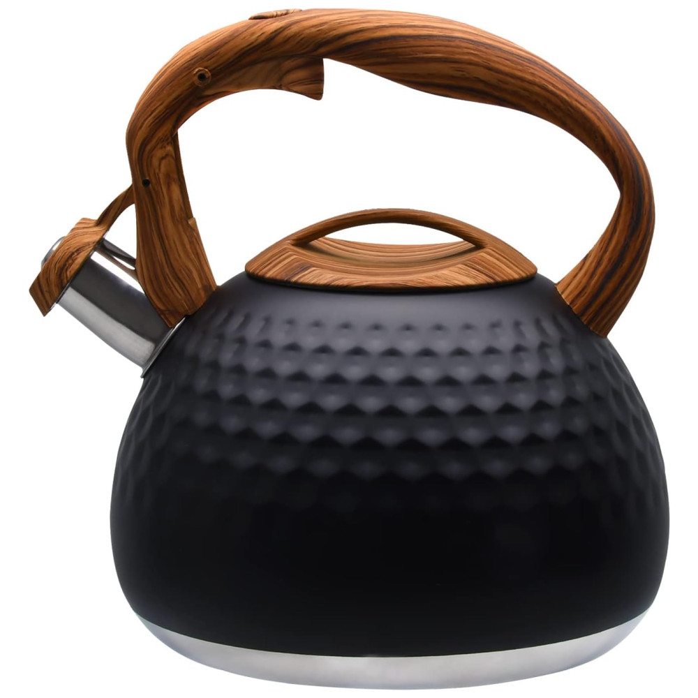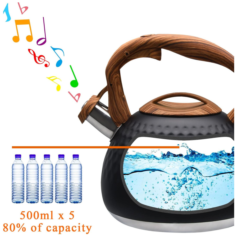 Chaleira de Chá 3 Litros em Aço Inoxidável com Apito e Alça de Madeira GGC Preta