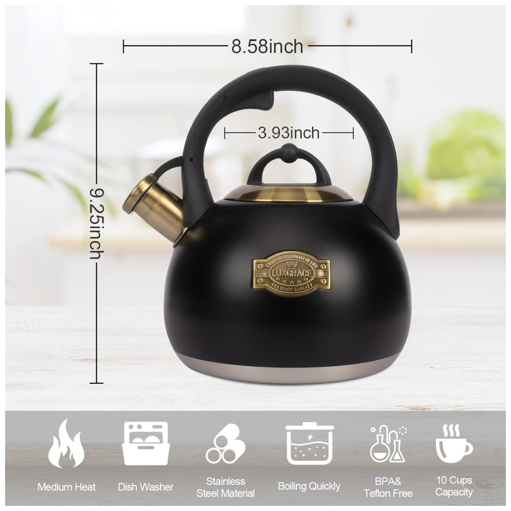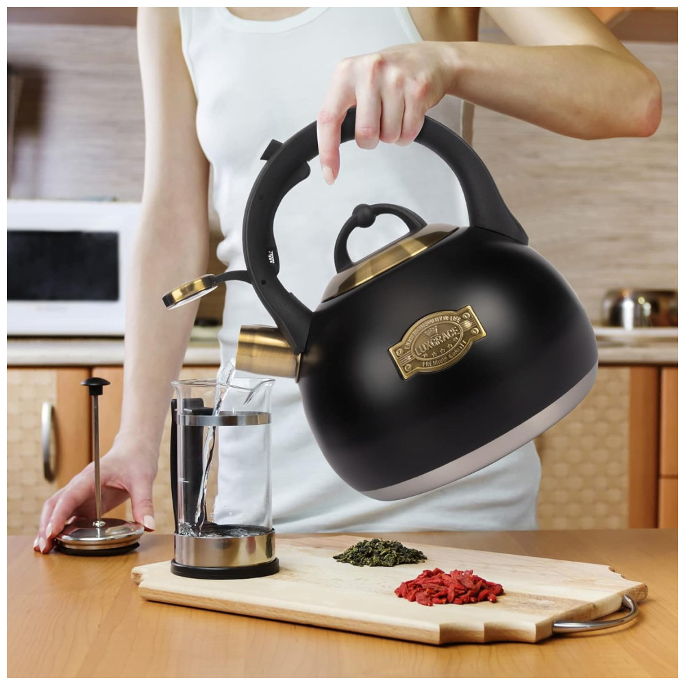 Chaleira de Chá 3 Litros em Aço Inoxidável com Apito e Alça Ergonómica LUXGRACE Preta