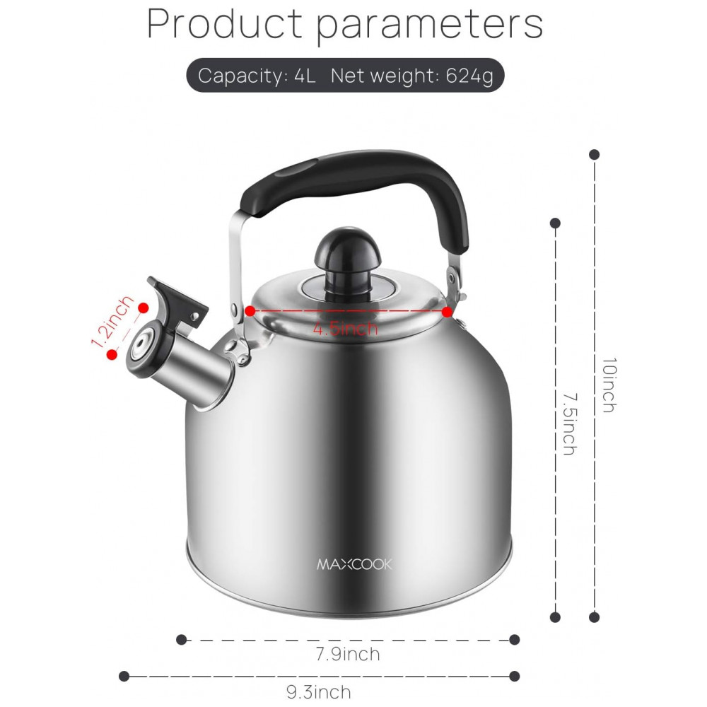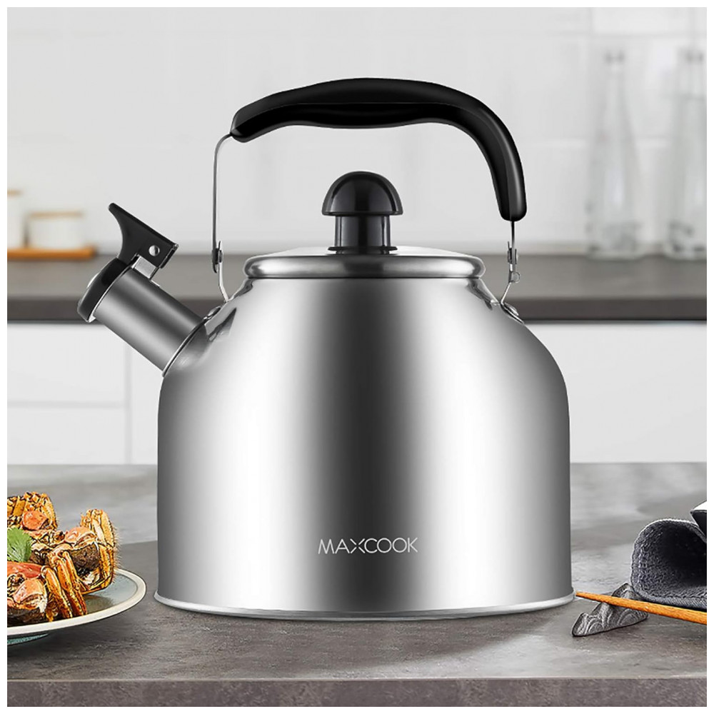 Chaleira de Chá 4 Litros em Aço Inoxidável com Apito MAXCOOK Prata