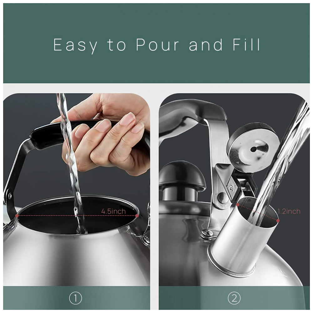 Material premium e adotando aço inoxidável SUS304 de alta qualidade para alimentos, nossa chaleira pode suportar ferrugem, corrosão, amassados e é construída para durar. A clássica superfície escovada faz com que nossos bules de chá pareçam muito suaves.