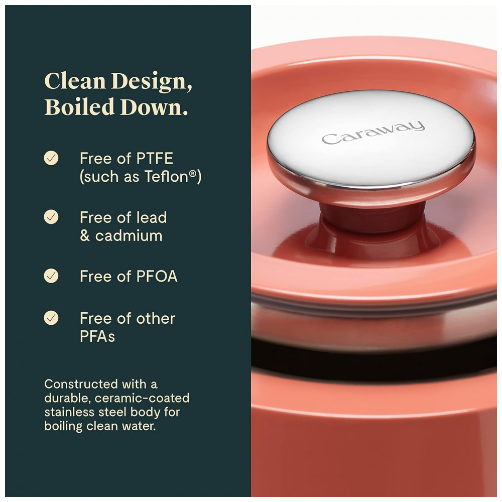 APROVADO PARA O PLANETA O bule de chá de alcaravia não contém PTFE, PFOA, PFAs, chumbo e cádmio. Nossas chaleiras de fogão são projetadas com materiais produzidos de forma ética que não levam a nenhum escoamento tóxico