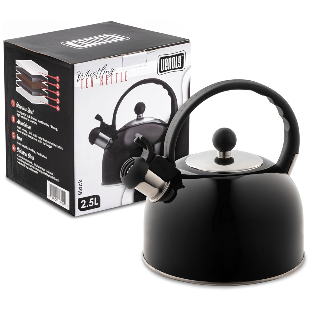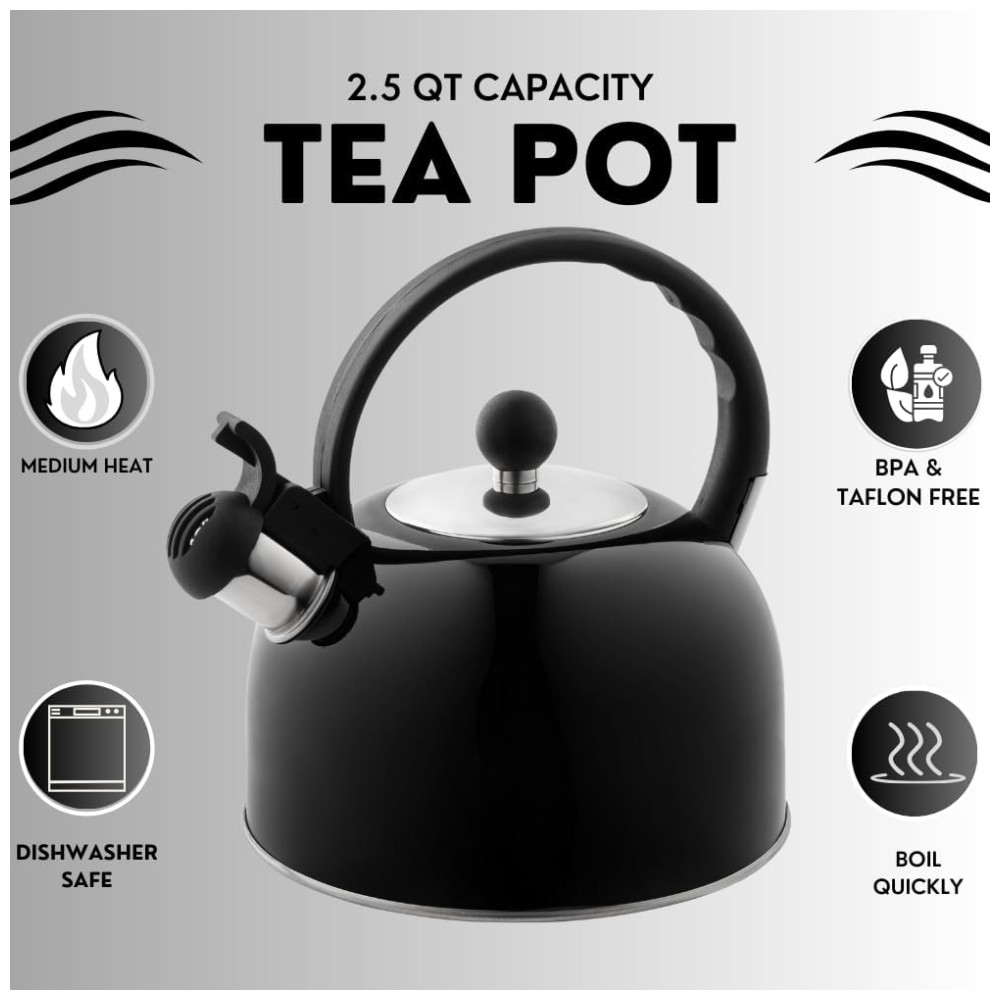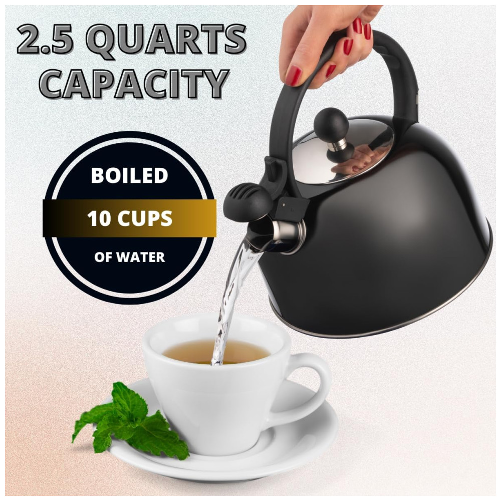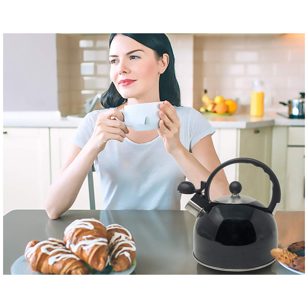 Chaleira de assobio pode aquecer e fervura rápida com grande capacidade 2,5 litros de água ou líquido para o seu chá. Despeje até 10,5 xícaras de líquido desta chaleira