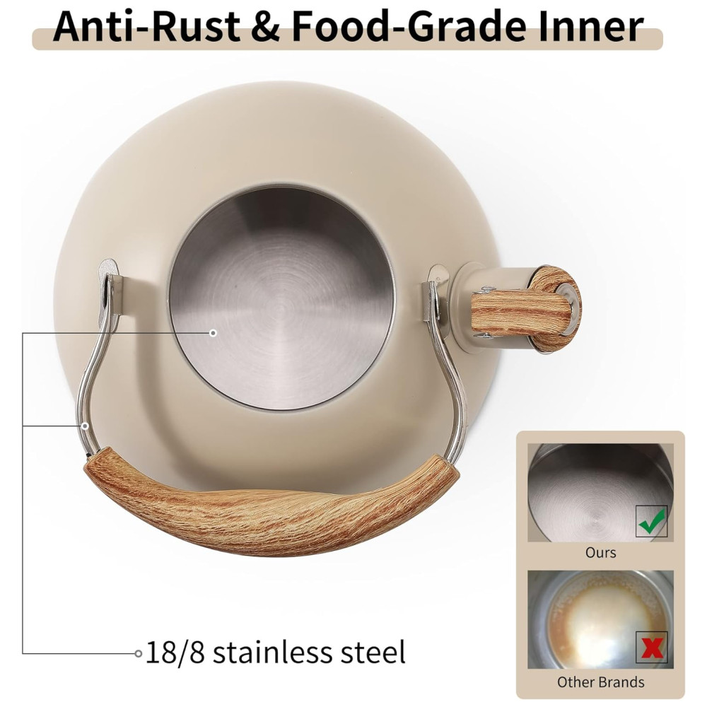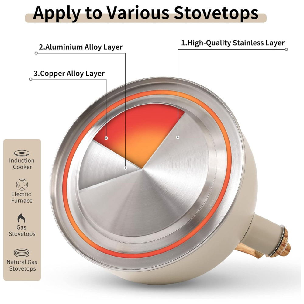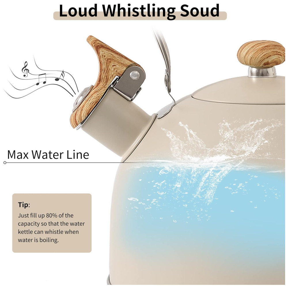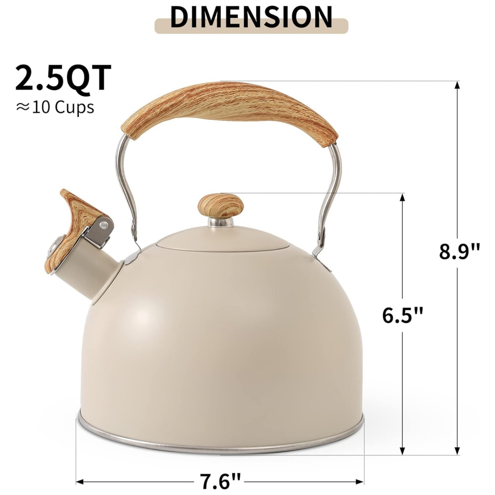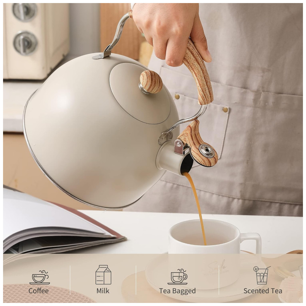 Chaleira de Chá LONFFERY 2.5 Litros em Aço Inoxidável com Apito e Alça Dovrável Branca