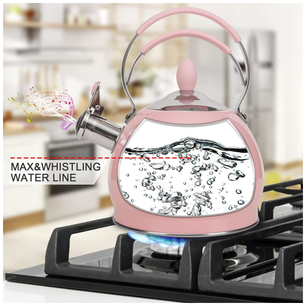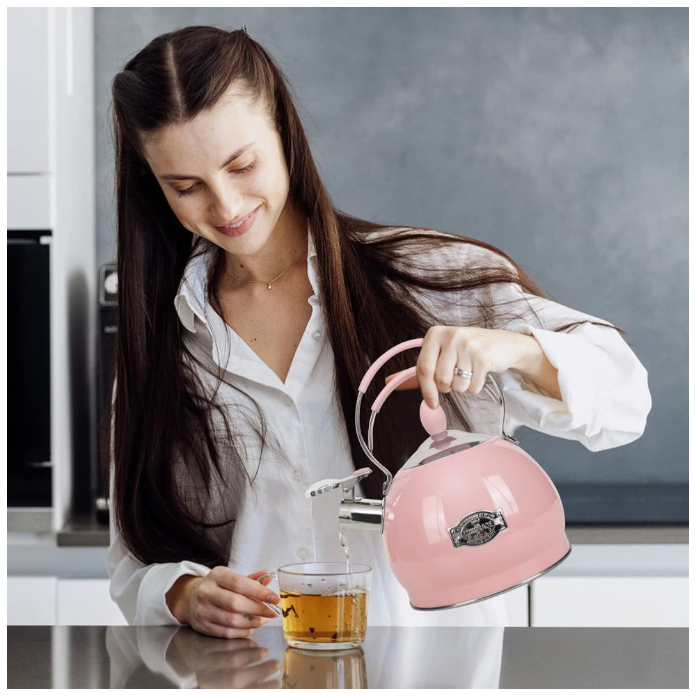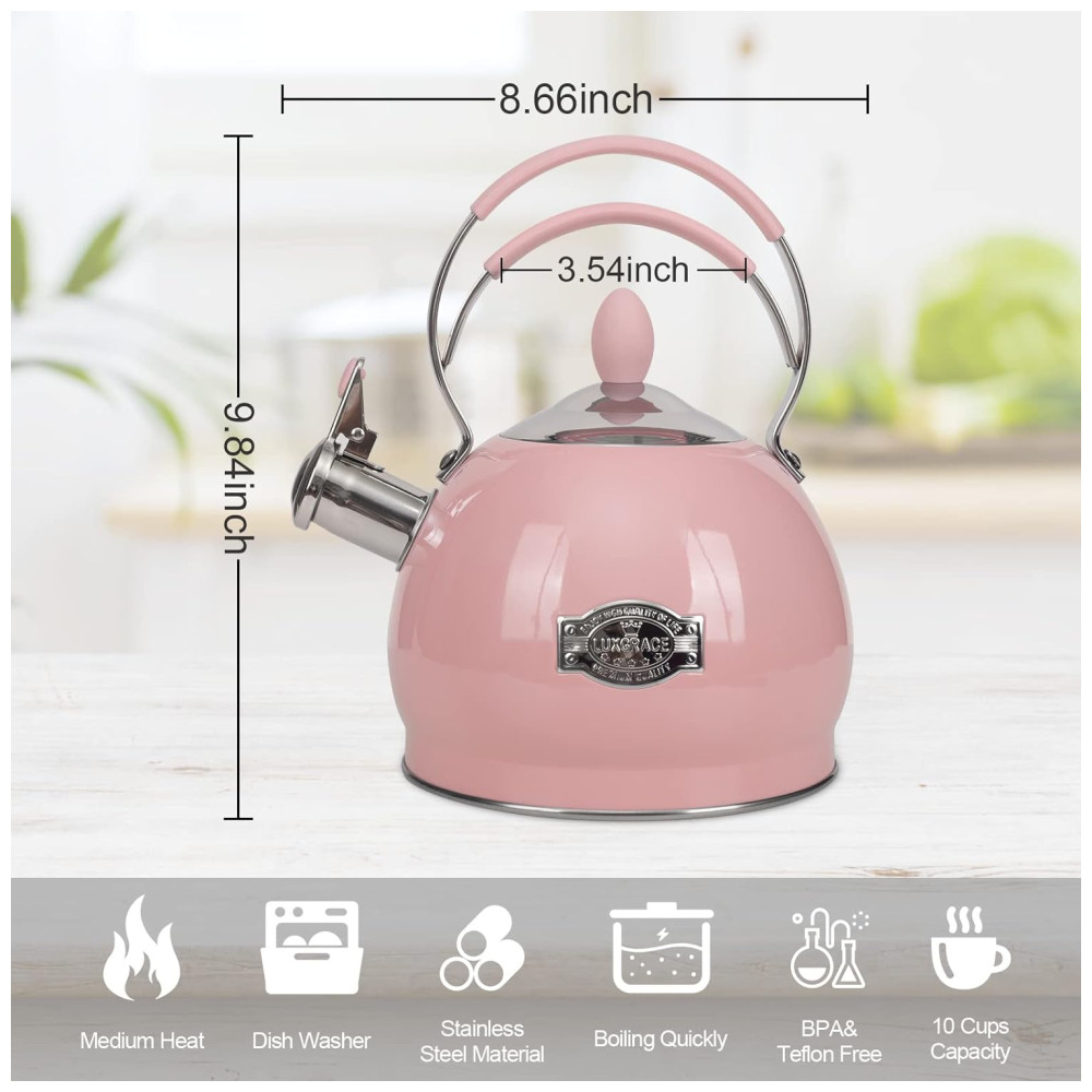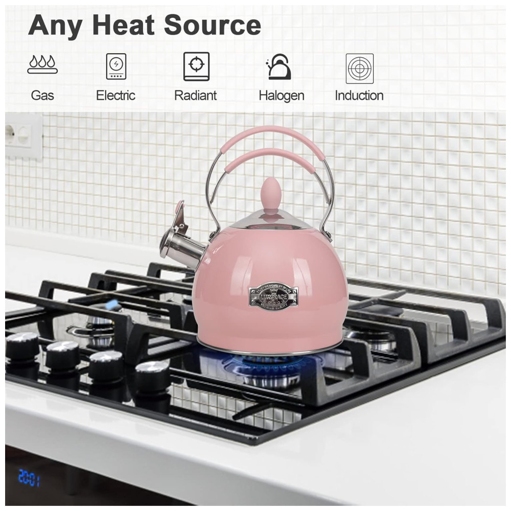 Chaleira de Chá LUXGRACE 2.5 Litros em Aço Inoxidável com Apito Rosa