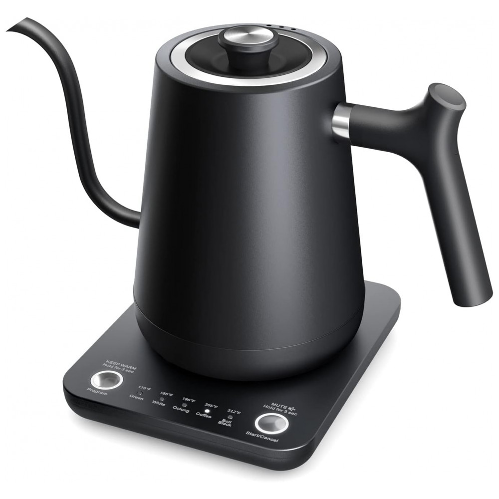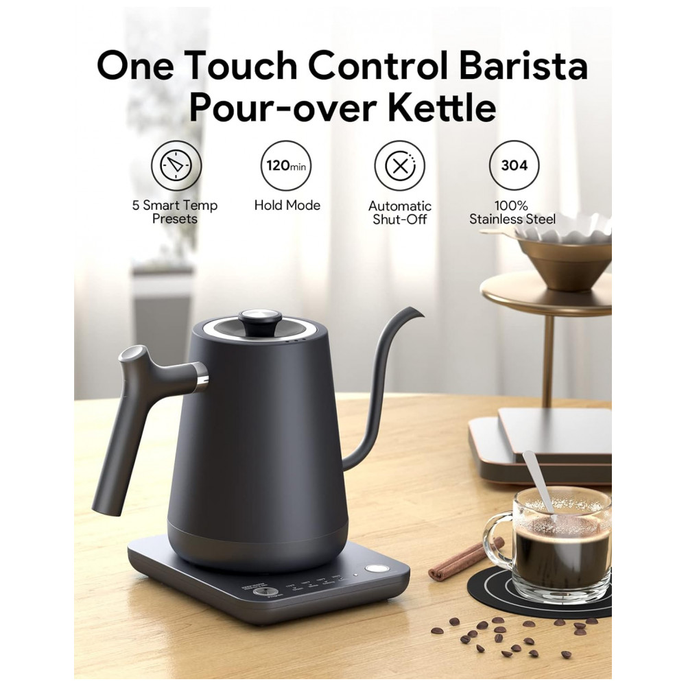 Interior 100 em aço inoxidável A chaleira elétrica gooseneck é feita com aço inoxidável 304 de qualidade alimentar. Comparando com outras chaleiras de temperatura variável, não há silicone ou plástico além do sensor de temperatura, que mantém o sabor perfeito para o seu café e chá.