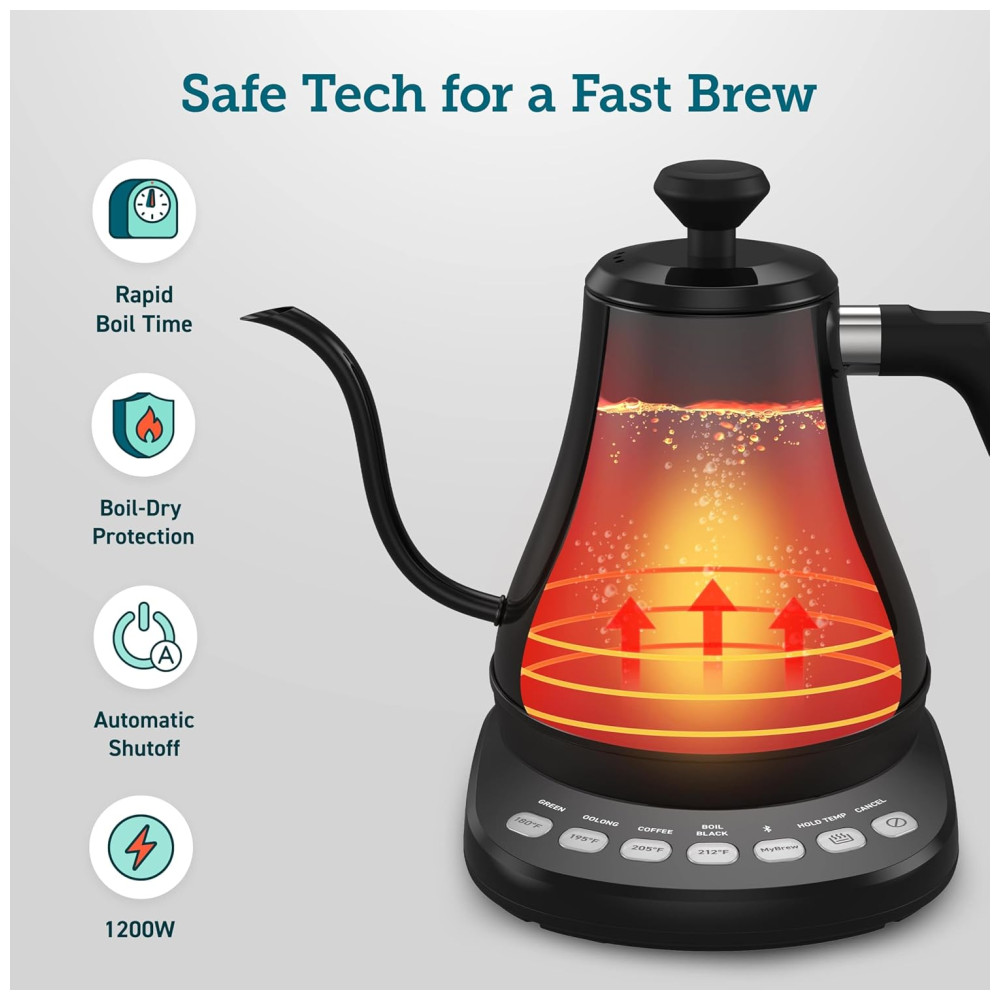 Ferva rápida economize tempo precioso fervendo água na chaleira pescoço de ganso em vez de no fogão. Com aquecimento potente, leva apenas de 3 a 5 minutos para ferver