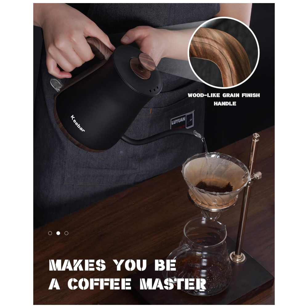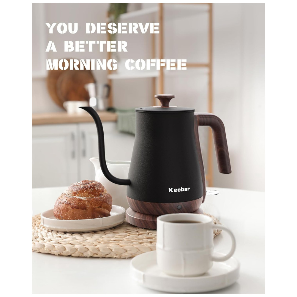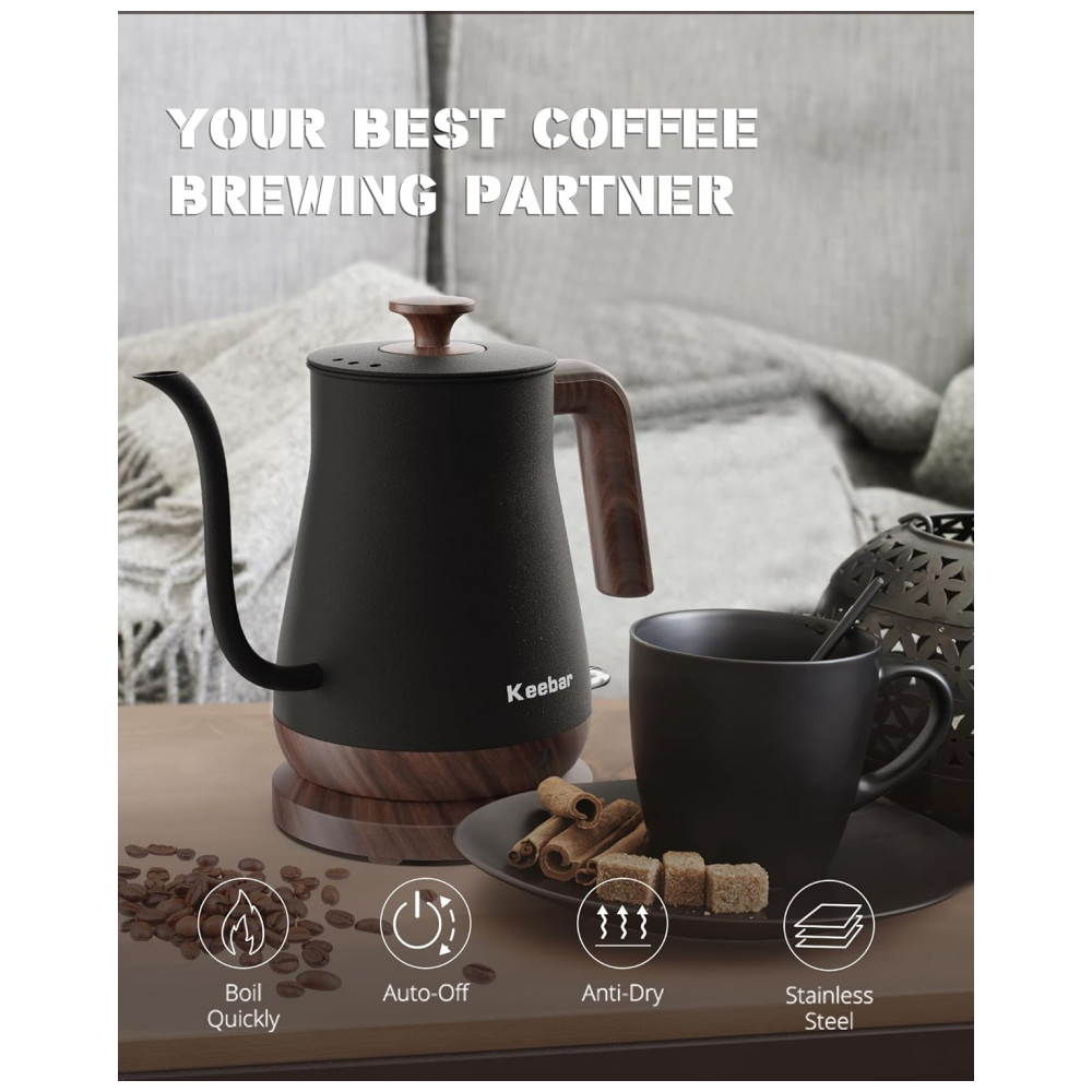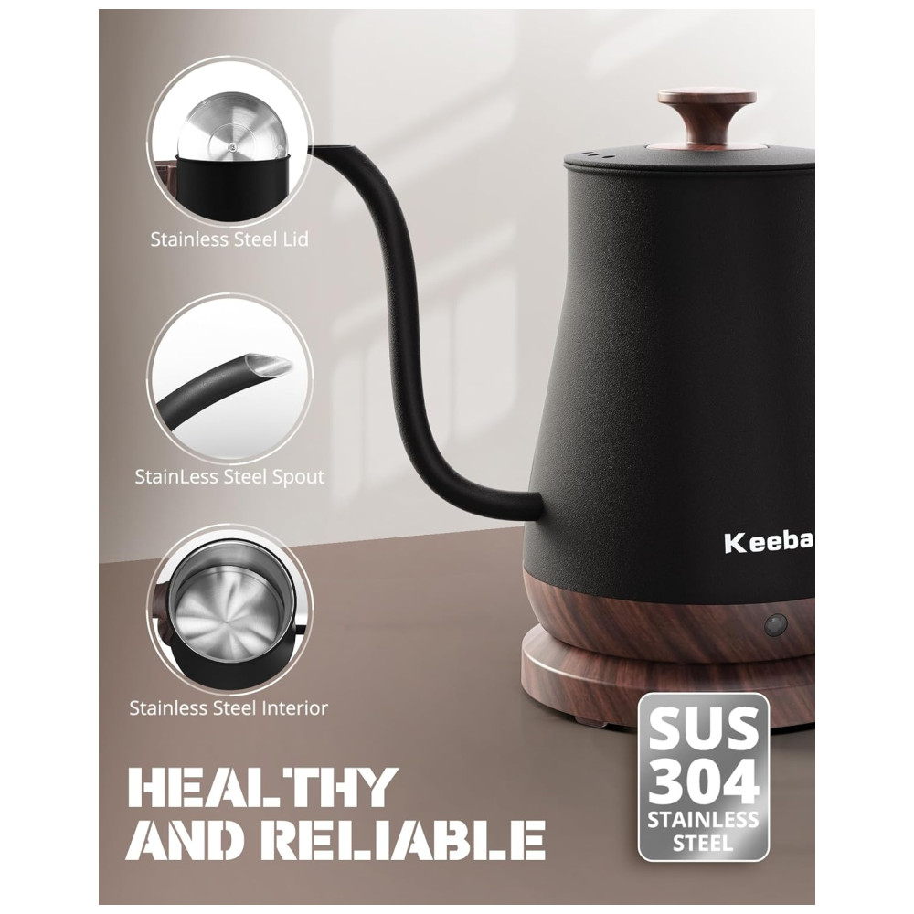 SAUDÁVEL E CONFIÁVEL A chaleira elétrica de pescoço de ganso Keebar é feita de aço inoxidável 100 de qualidade alimentar, o que garante a ausência de produtos químicos e insalubres no interior da chaleira.