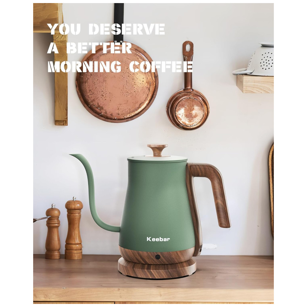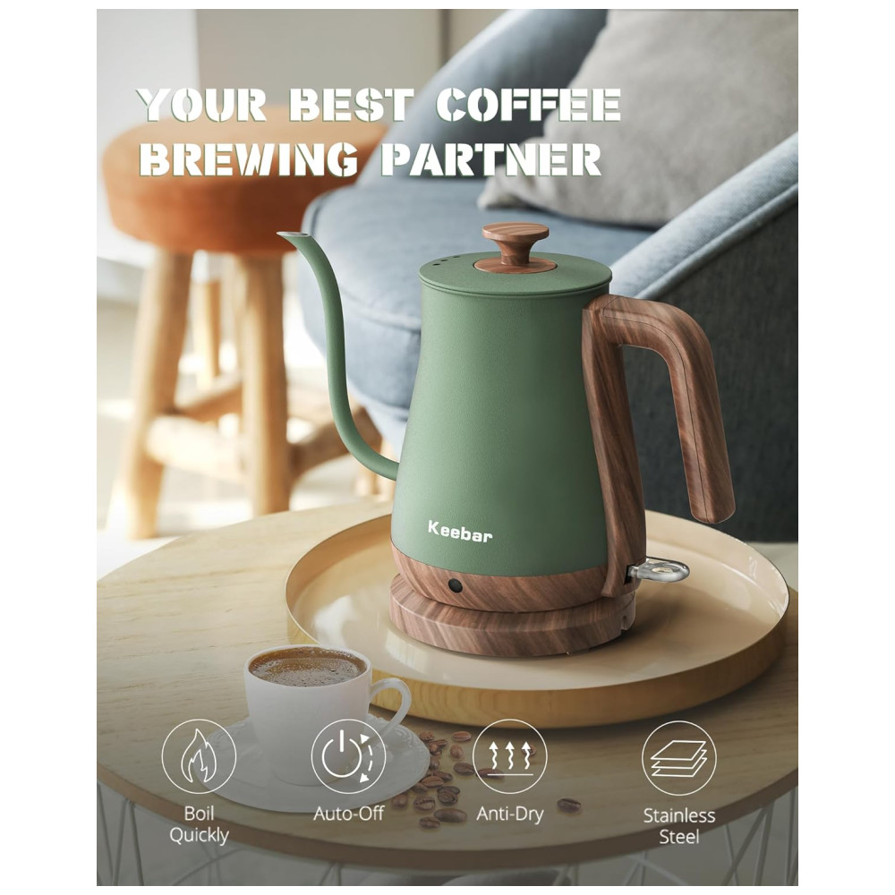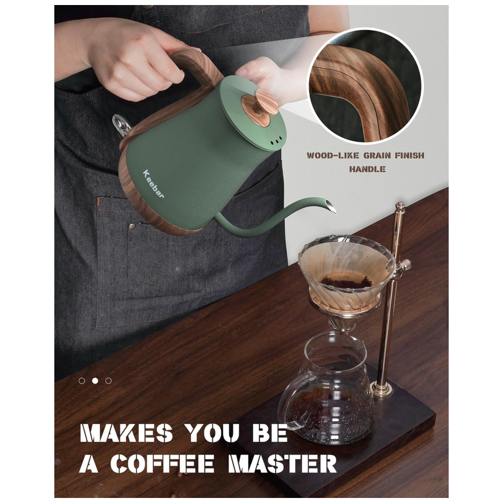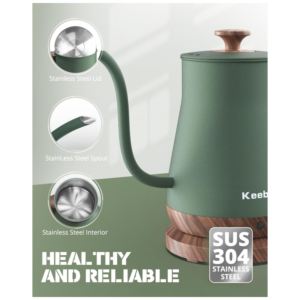 SAUDÁVEL E CONFIÁVEL A chaleira elétrica de pescoço de ganso Keebar é feita de aço inoxidável 100 de qualidade alimentar, o que garante a ausência de produtos químicos e insalubres no interior da chaleira.