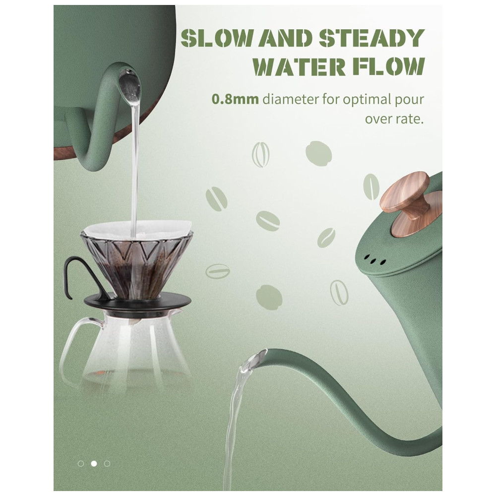 DESIGN ÚNICO E SIMPLES A chaleira de café com bico longo de pescoço de ganso melhora a experiência de preparo, a água sai suavemente, não há necessidade de se preocupar com vazamentos. Concentre se em preparar chá, café, leite em pó e aveia. Deixe esta caldeira de água para derramar torna sua vida mais ritualística.