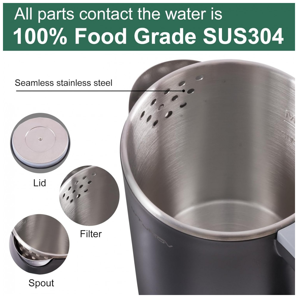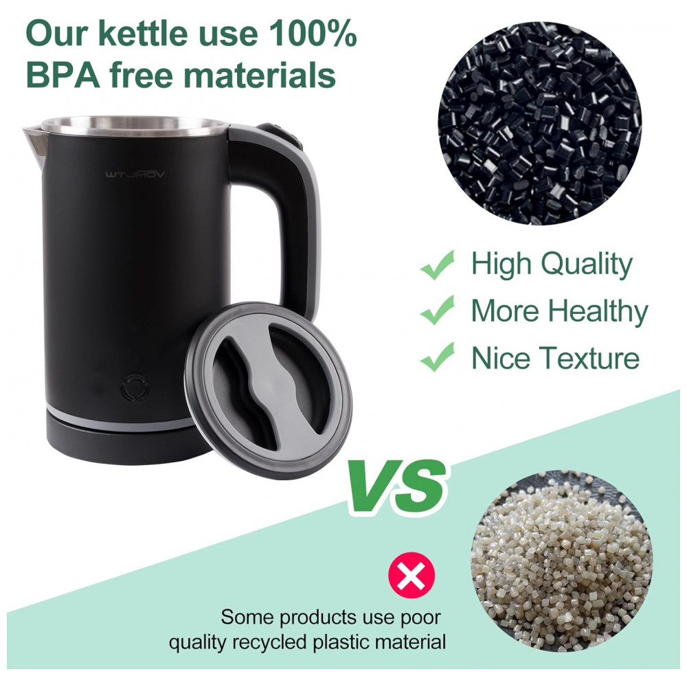 Materiais de segurança Todos os materiais para esta pequena caldeira de água são de qualidade alimentar e 100 sem BPA. Toda a água de contato das peças é de aço inoxidável 304, mantendo a água mais saudável e com um sabor mais puro. Não se preocupe, o plástico afeta seus sabores. Com design com parede dupla, que faz um toque quando fervida a água.