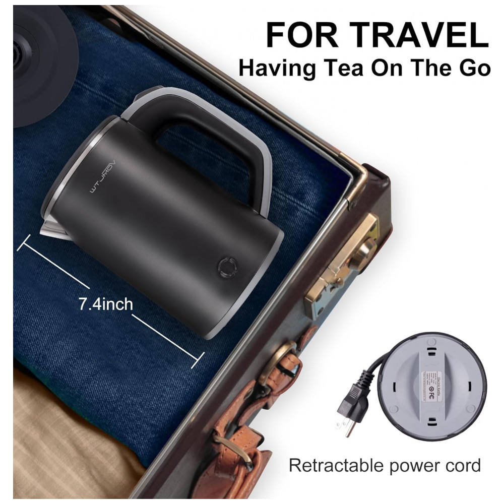Tamanho pequeno e portátil Esta chaleira elétrica com tamanho de 7,4 3,9 polegadas é pequena o suficiente na sua mala para viajar, viagem de negócios para fazer água quente para você em qualquer lugar. Também ocupa um pouco de espaço na bancada, o zenamento do cabo rotativo para manter a bancada organizada e para uso em viagens.