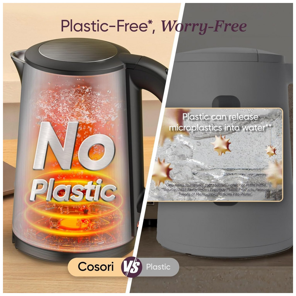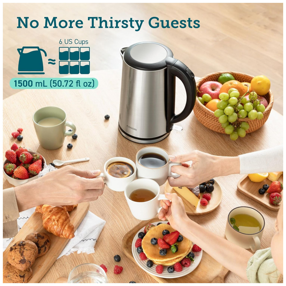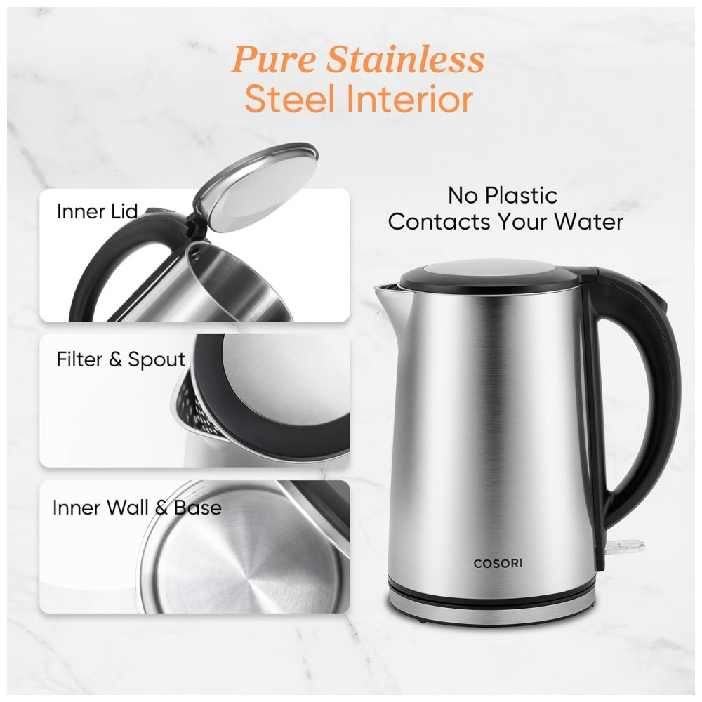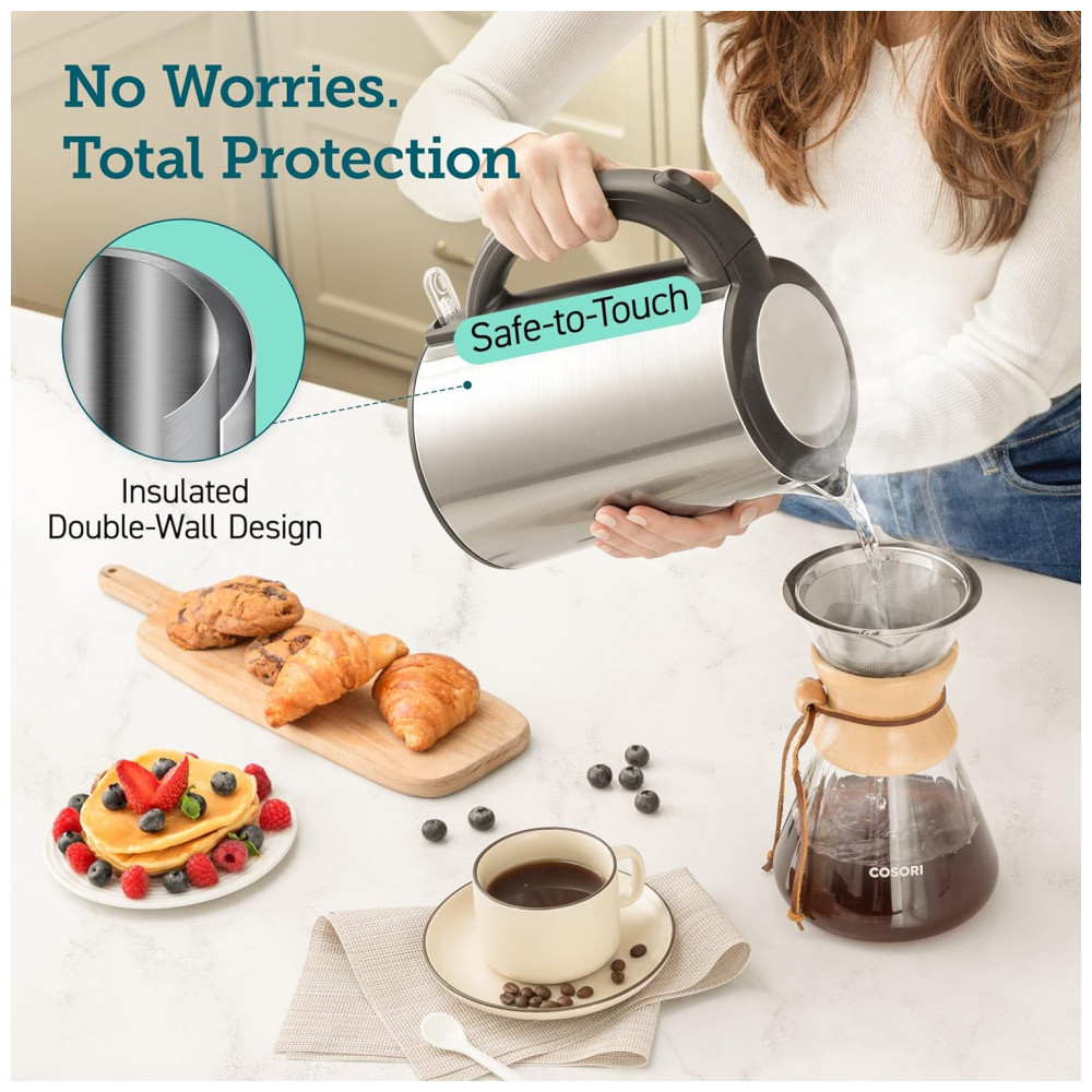 Chaleira Elétrica 1.5L em Aço Inoxidável com Desligamento Automático e Proteção Contra Fervura 110V 1500W COSORI Prata