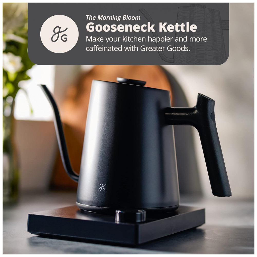 Chaleira Elétrica 1 L com Alça Contrabalançada em Aço Inoxidável 110V 1200W Greater Goods GK0449 Preto Onix