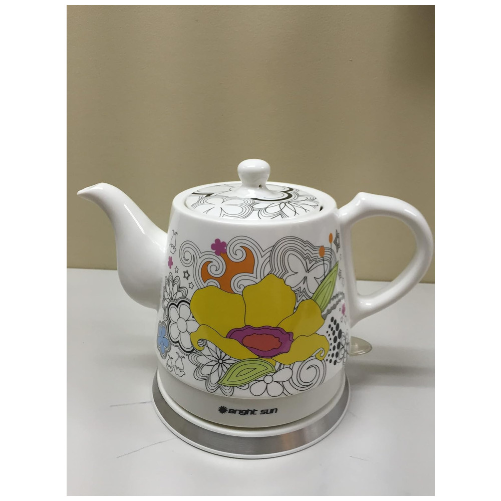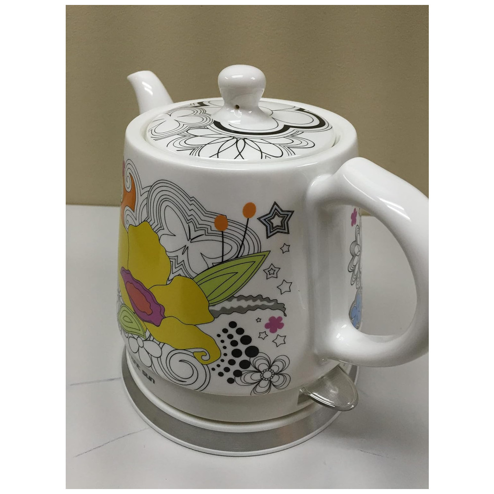 Chaleira Elétrica 1.2L com Desligamento Automático Ceramica 1000W Floral 110v FIXTUREDISPLAYS Branco