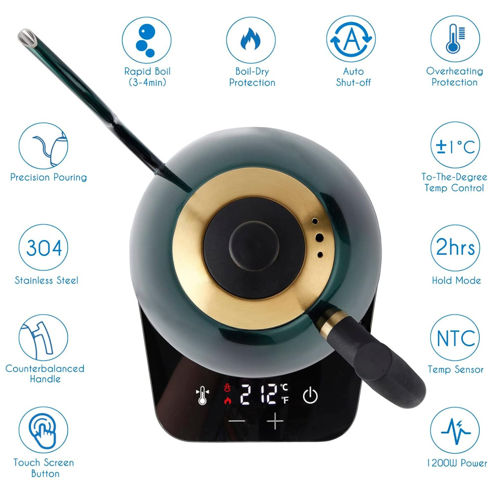 Controle de temperatura Acelere seu processo de fabricação de cerveja e seu sistema de aquecimento rápido de 1200 watts para ferver água em 3 4 minutos. O controle de temperatura de grau da nossa chaleira permite aperfeiçoar sua xícara de café ou chá favorito.