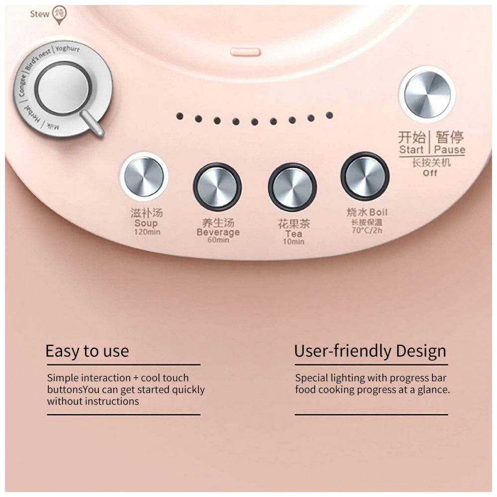 Conveniente e As luzes da barra de progresso mostram o progresso do cozimento rapidamente. Operação de um botão, não há necessidade de tomar cuidado. O enrolador embutido e o rack de zenamento de potes de vidro o tornam organizado, o suporte anti escaldante e a alça da cesta de chá evitam queimaduras.