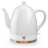 Janela de vidro e design de parede dupla Apresentando o conceito clássico de estrutura de parede dupla com um design de janela de vidro, esta chaleira combina a função de toque e uma experiência visual única. A janela de vidro permite medir a quantidade perfeita de água para ferver, e a parede externa mais espessa garante que a camada externa esteja sempre mais fria do que a chaleira de vidro normal para evitar queima acidental e rachaduras.
