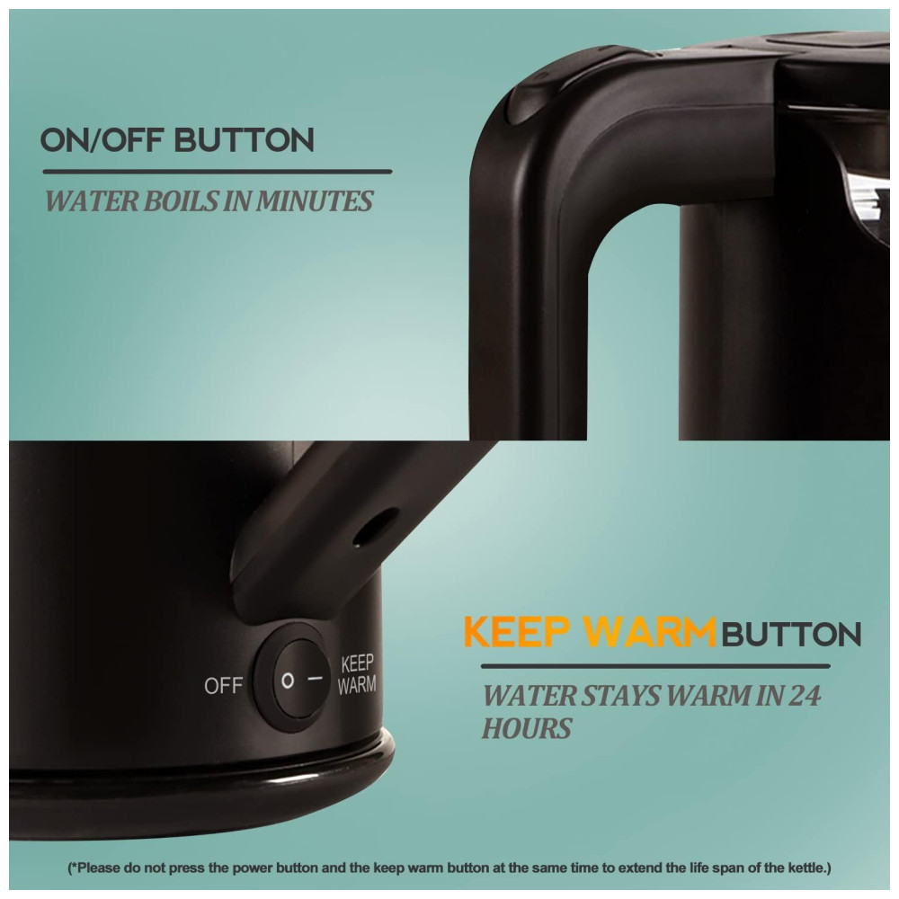 Vidro borosilicato e aço inoxidável 304 Todo o corpo da chaleira é feito de vidro borossilicato especialmente fabricado, conhecido por sua resistência ao calor e resistência a rachaduras. E seu fundo e tampa interna são feitos de aço inoxidável 304 de grau alimentício 100 que permite salvar o sabor natural da água sem odores após o aquecimento.