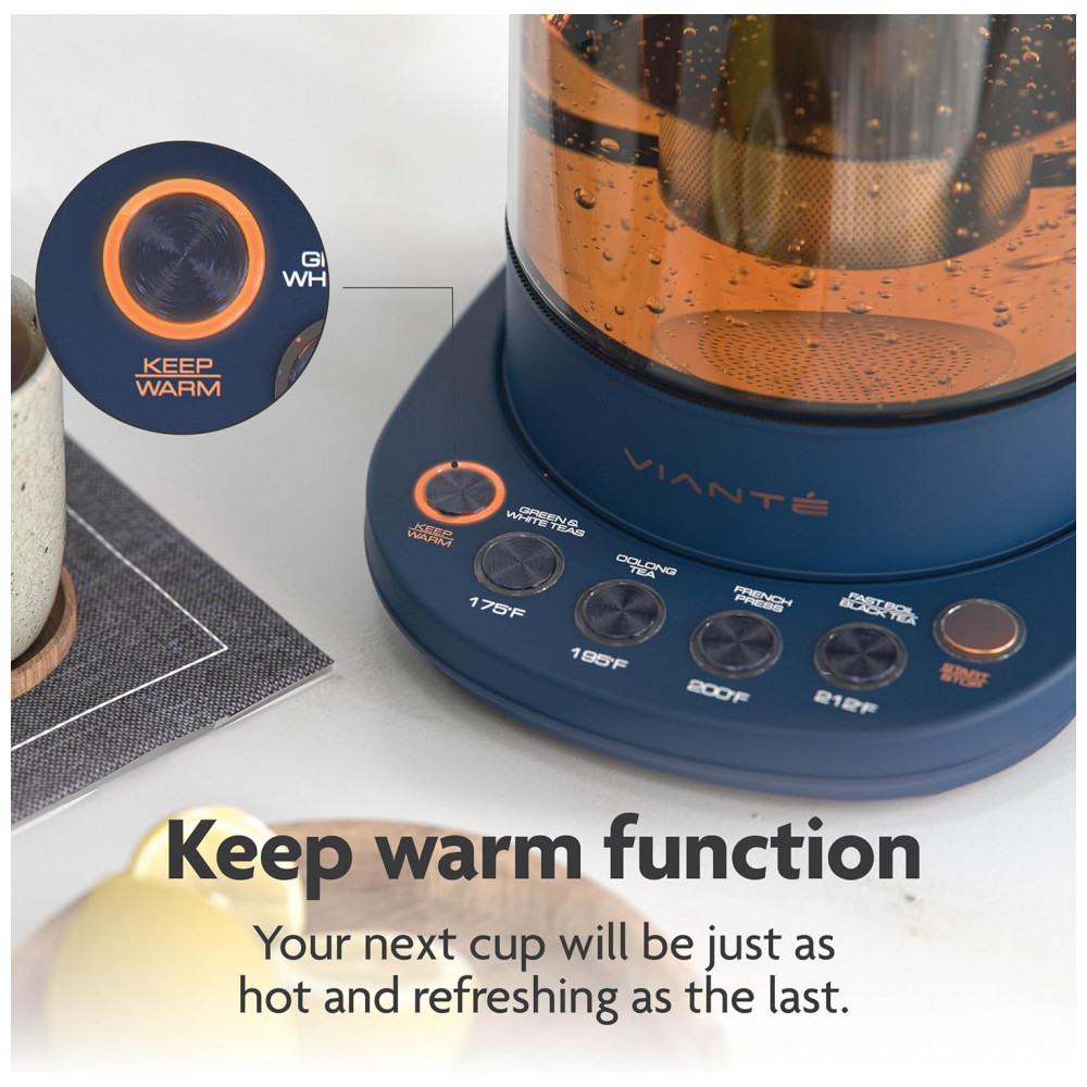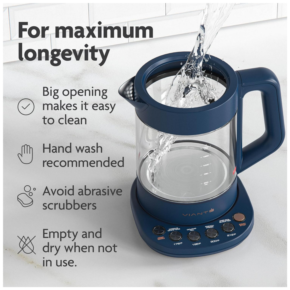 Chaleira Elétrica 15L com Jarro de Vidro Controle de Temperatura e Desligamento Automático Vianté Azul