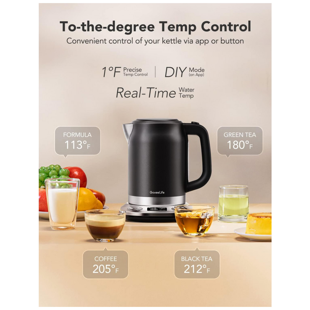 Chaleira Elétrica 17 L com Controle de Temperatura Inteligente 110V 1500W Govee Preta