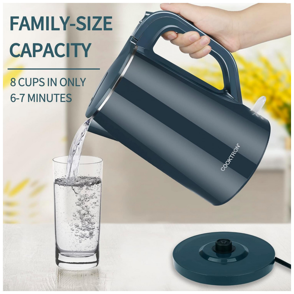 A chaleira elétrica coberta por um exterior de plástico sem BPA, o exterior de toque frio e a alça tornam a chaleira segura para tocar mesmo quando fervendo, enquanto isso, o design de parede dupla mantém sua bebida quente e o topo largo abertura para enchimento fácil e limpeza fácil.