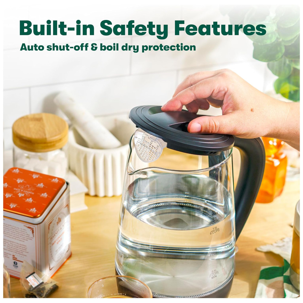 Favorito atemporal Da bancada à mesa ou sala de estar, esta chaleira é um item portátil e sem fio, combinando estilo e versatilidade com funcionalidade e segurança. Seu corpo de vidro durável permite que você veja como água quente ferver para chá, café, aveia, sopas instantâneas e muito mais