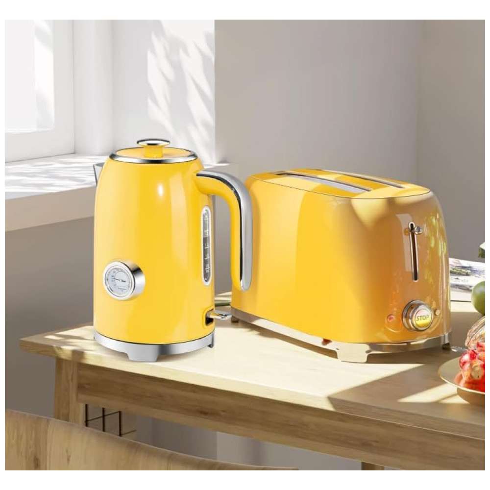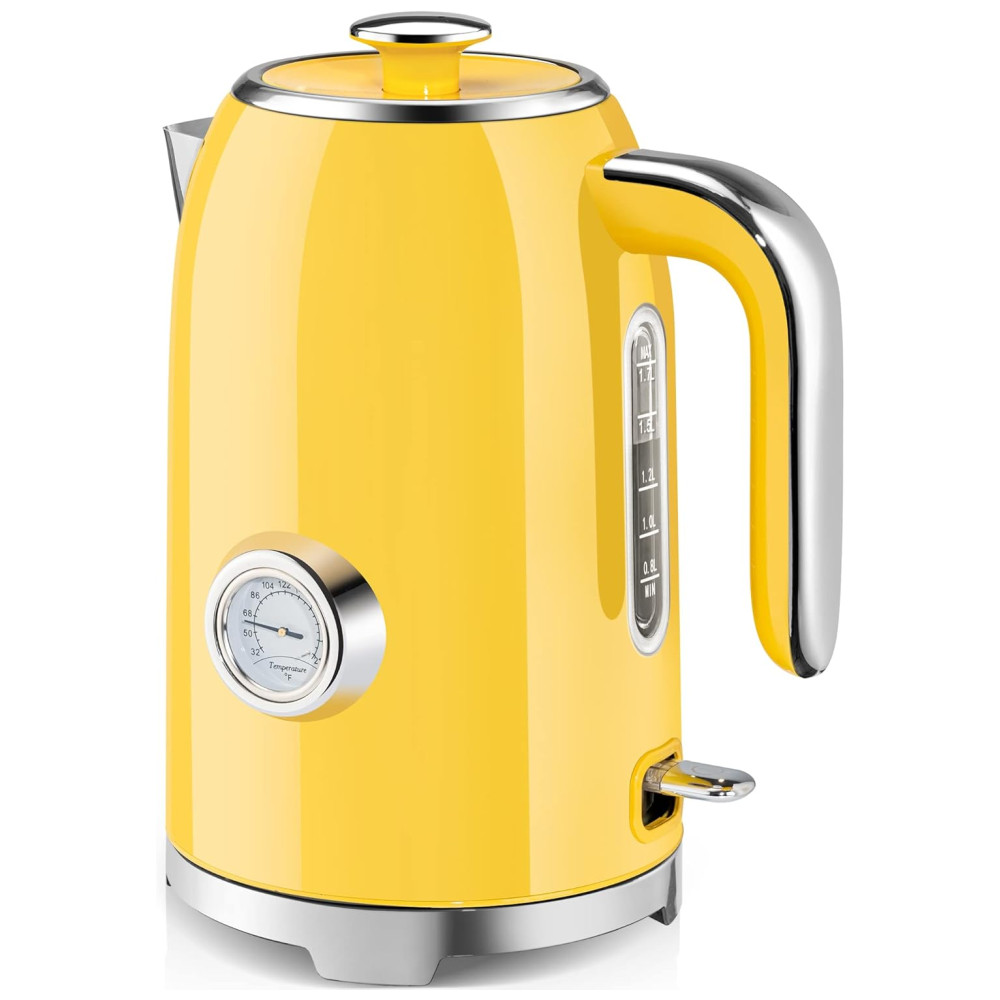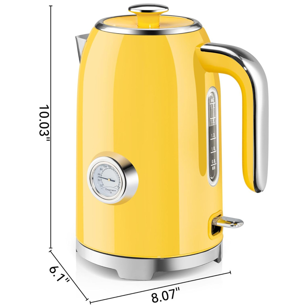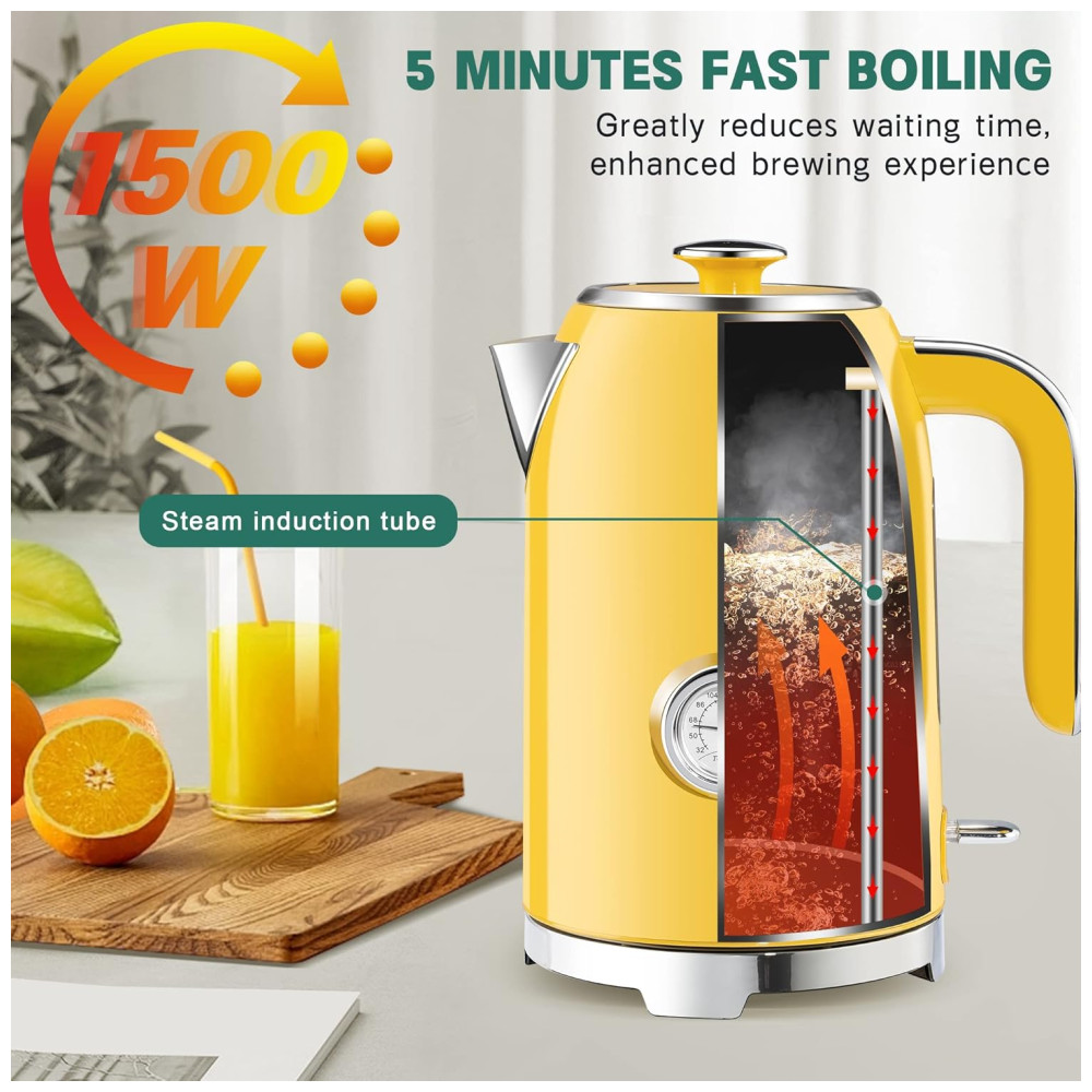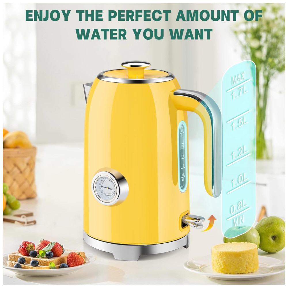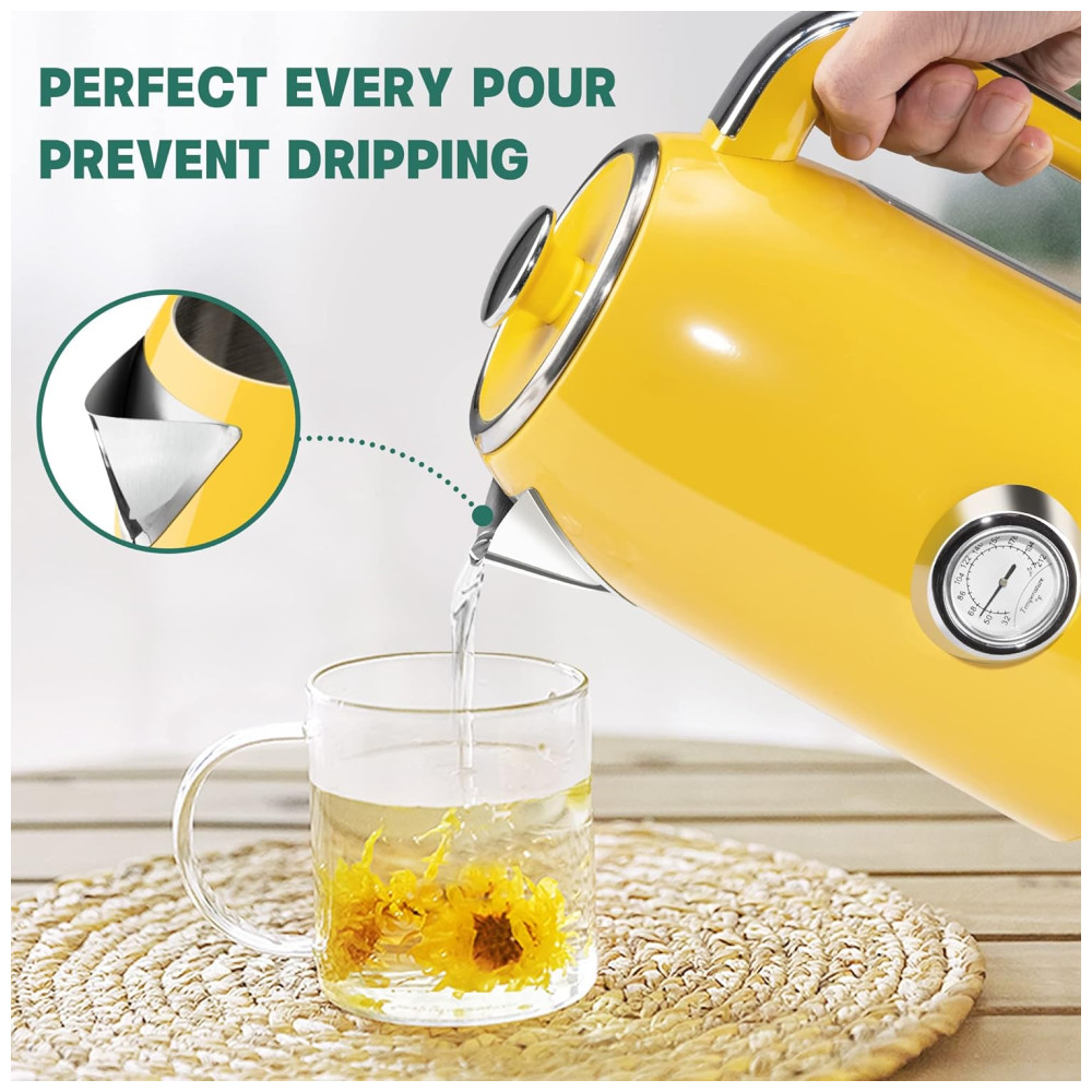 Chaleira Elétrica SUSTEAS Amarela Retrô 17L 1500W Inox Termômetro LED Proteção Secagem Auto Desligamento Fervura Rápida 110V