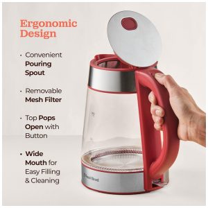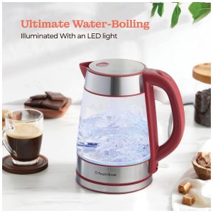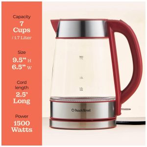 Chaleira Elétrica 1.7 Litros com Jarra de Vidro e Desligamento Automático 110V 1500W Vermelha