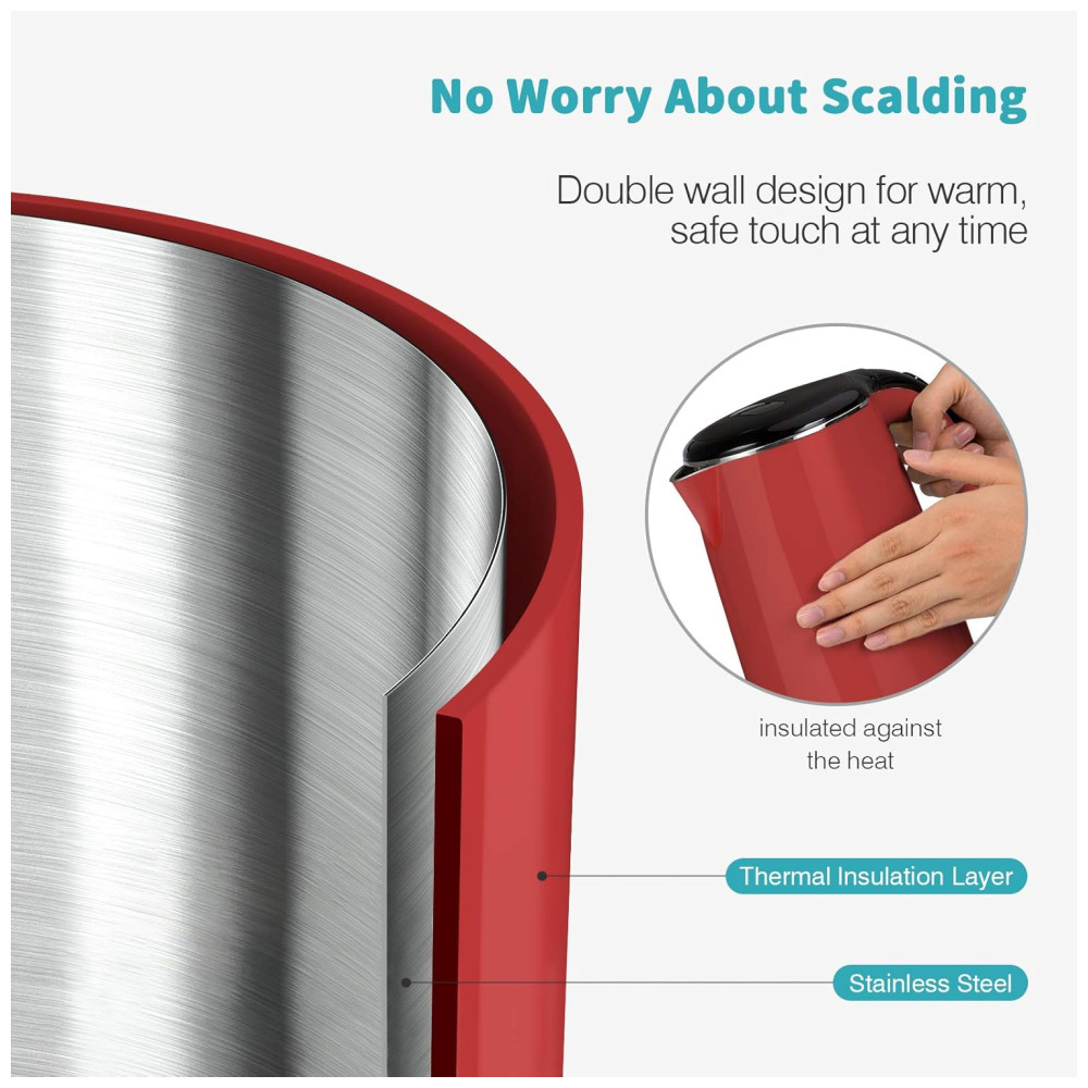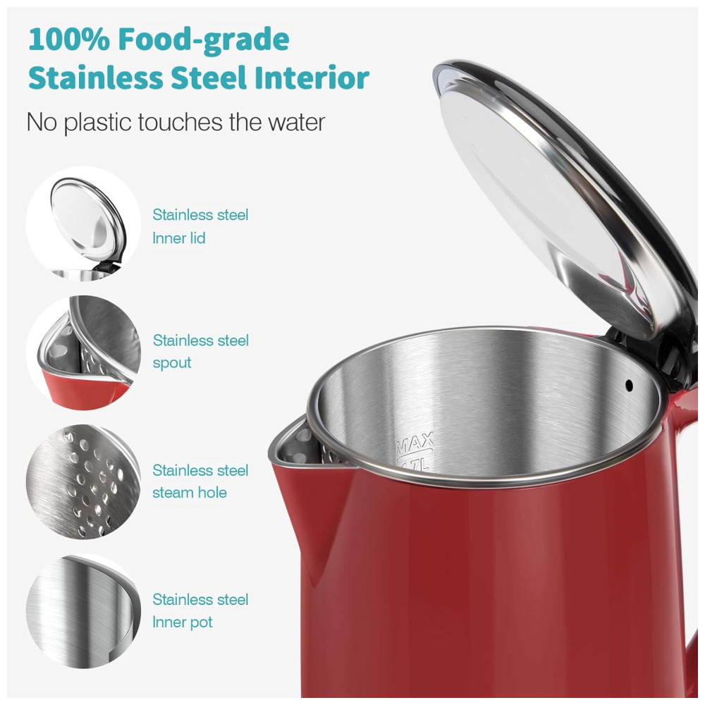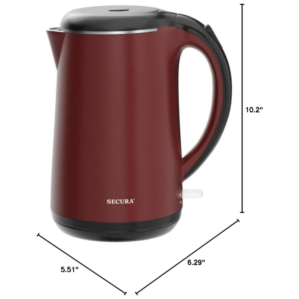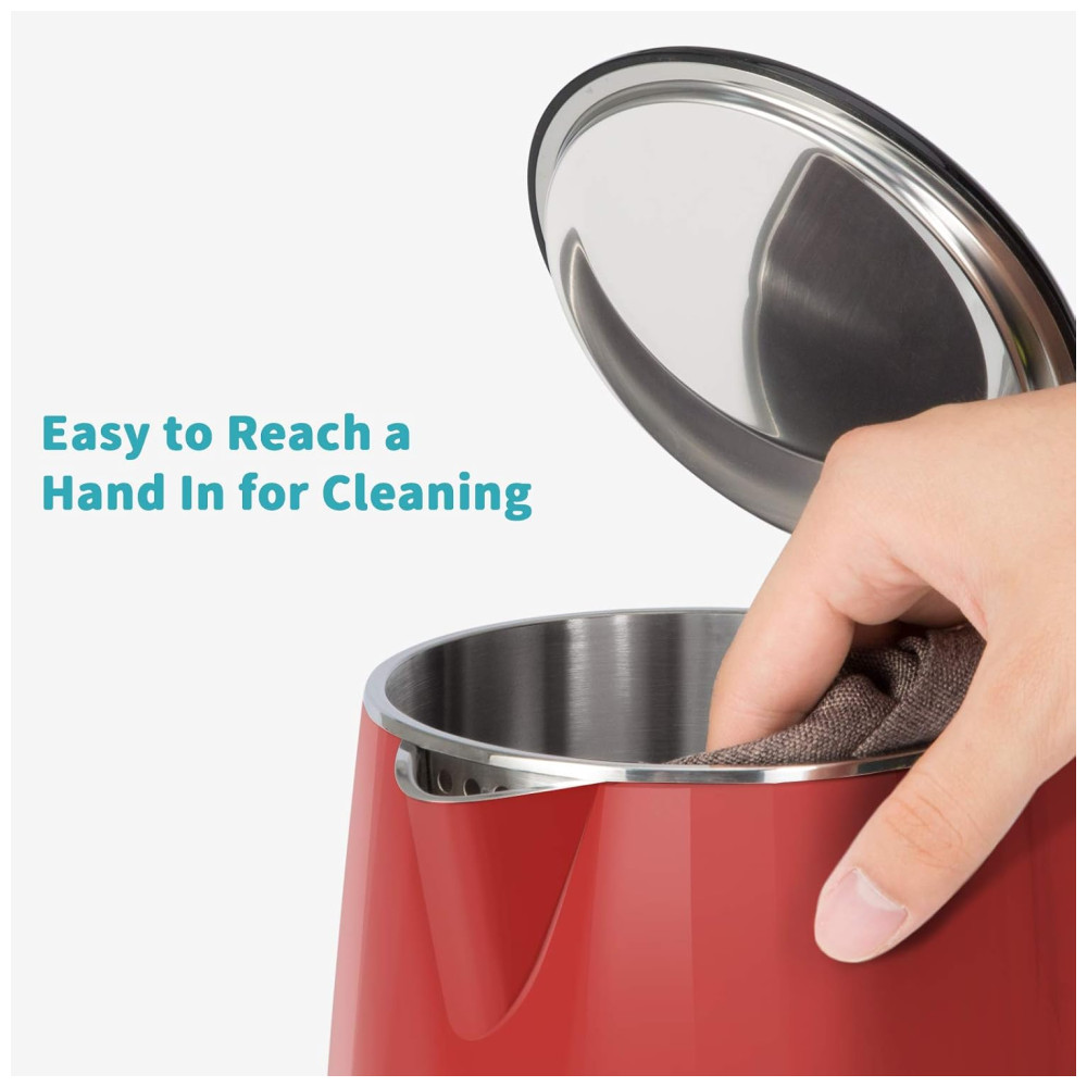 Desfrute de água potável segura e saudável fabricada com um interior 100 de aço inoxidável panela de aço inoxidável, tampa de aço inoxidável, bico de aço inoxidável, aro de aço inoxidável, a chaleira elétrica Secura não tem plástico em contato com água quente. Assim, você pode desfrutar de água quente para um chá perfeitamente ensopado ou para cozinhar. Água quente pronta rapidamente Com a potência de 1500 Watts, a água quente fervente estará pronta rapidamente perfeita para as manhãs movimentadas, quando você quer uma xícara de café ou chá rápida. Métodos de aquecimento mais rápidos e eficientes do que os antiquados para ajudar a economizar dinheiro nas contas de energia. Bico largo e abertura grande. Uma abertura extra grande torna esta chaleira fácil de limpar e reabastecer