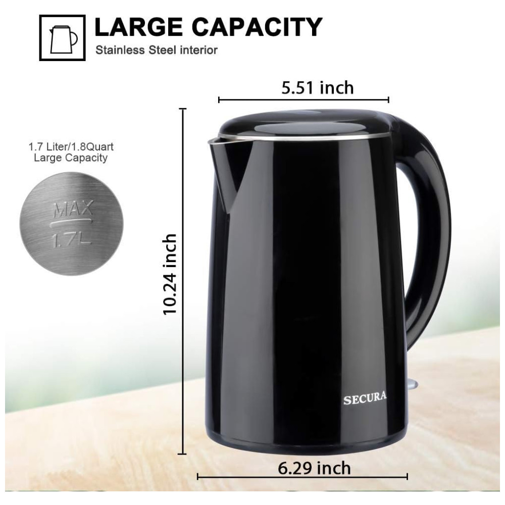 Chaleira Elétrica 1.7L Aço Inoxidável 110v SECURA SWK 1701DA Preto
