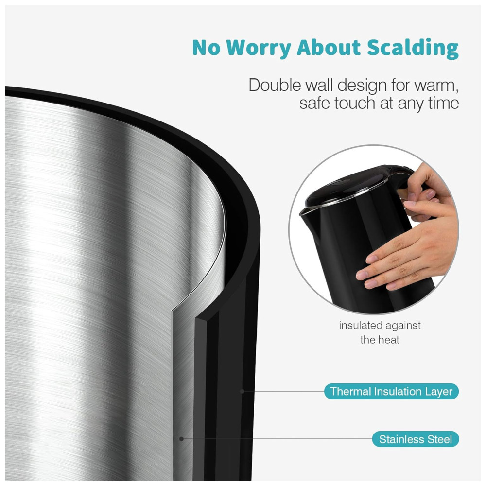 Controle STRIX britânico dentro, durar mais que outra chaleira de água. 120V 60Hz, 1500W de potência de aquecimento. Produto aprovado pela Etl