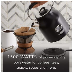 1500 W DE PODER DE FERVER ÁGUA QUENTE Aquece água rapidamente mais rápido do que um micro ondas ou fogão para café, chá, lanches, sopas e muito mais