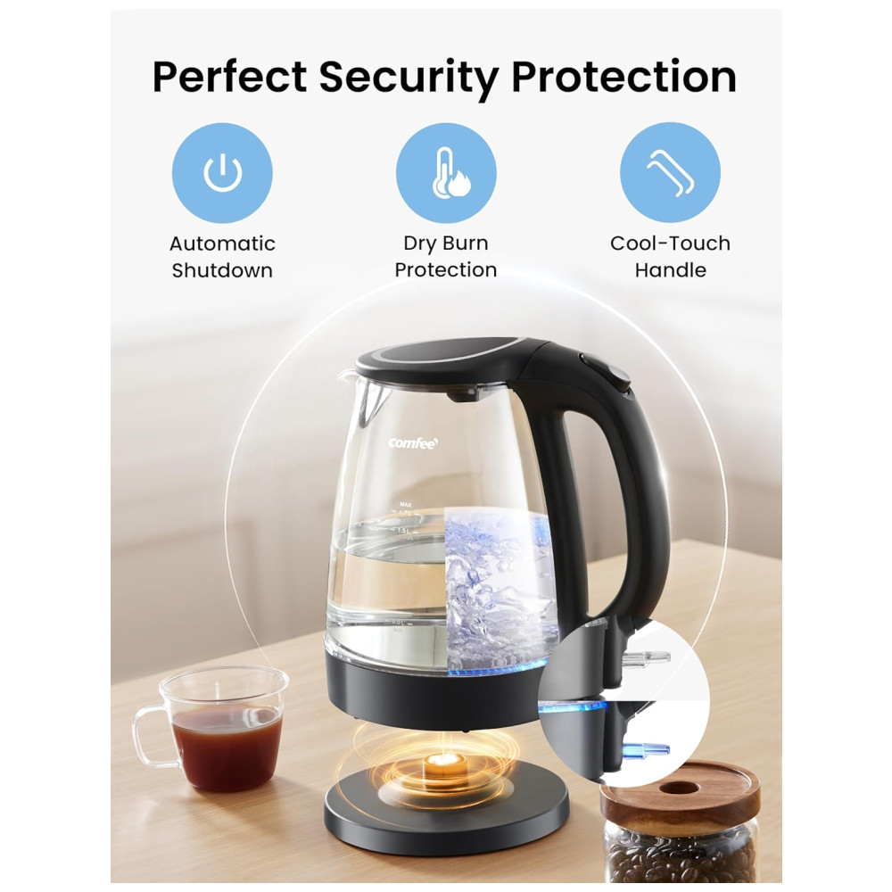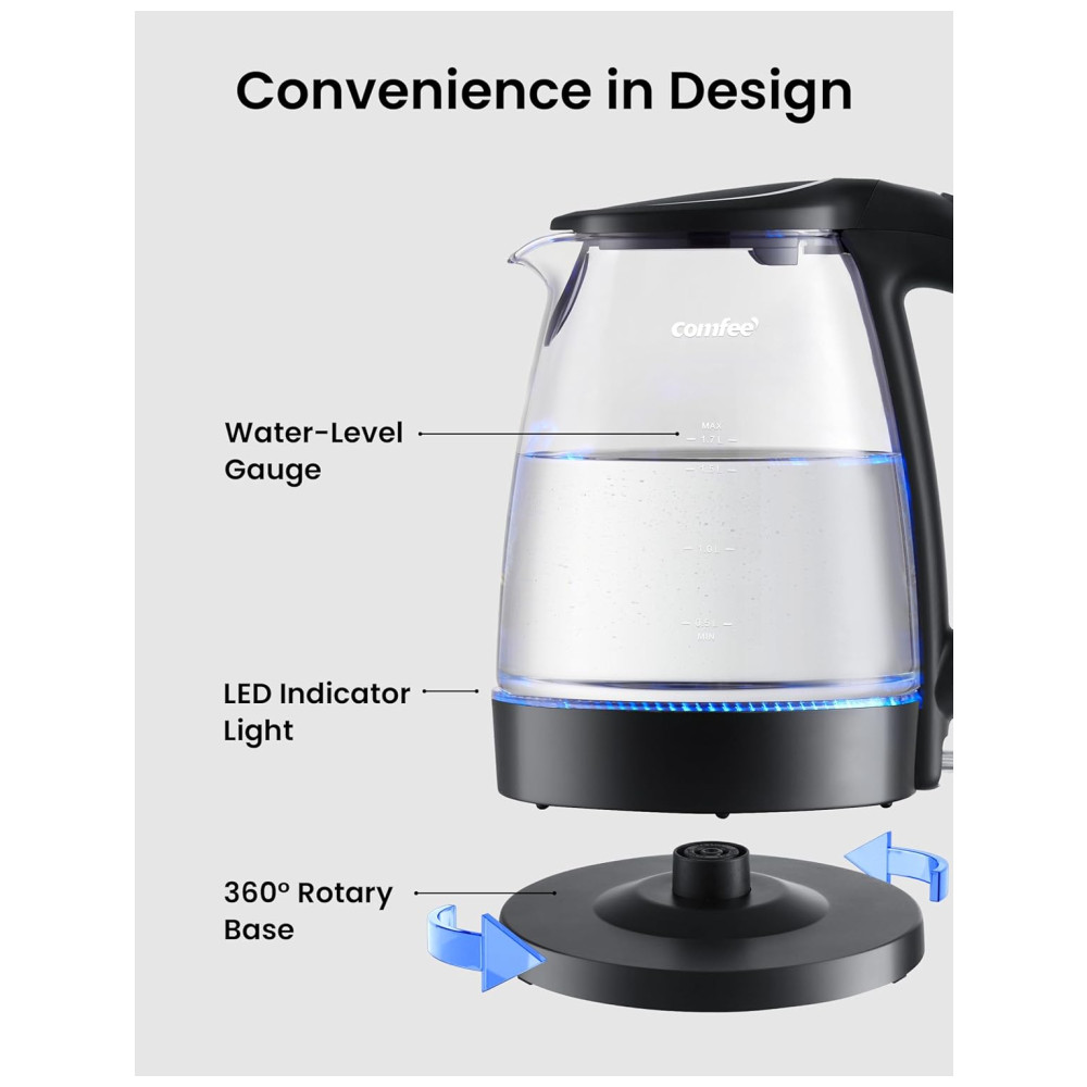Chaleira elétrica. 1.7L Caldeira de água quente. 1500W Ferva rápida. Chaleira de chá elétrico de vidro com indicador.COMFEE
