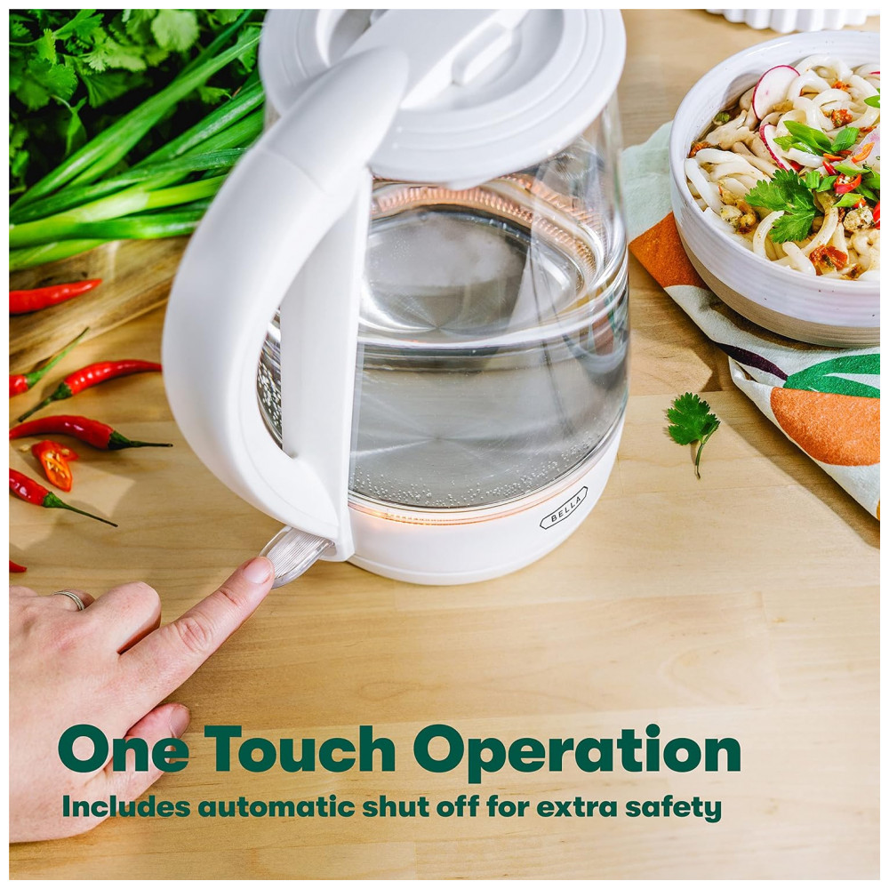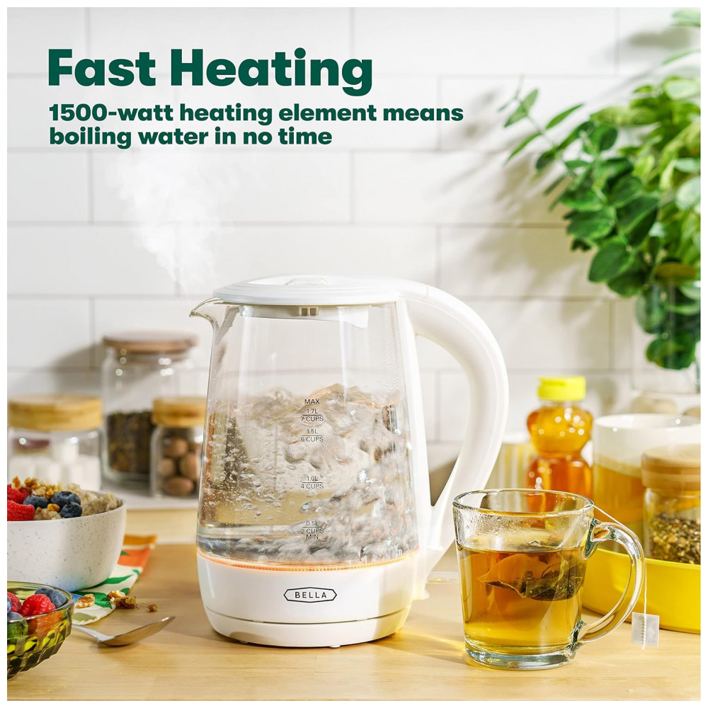 FAVORITO INTEMPORAL Da bancada à mesa e à sala de estar, esta chaleira é um item doméstico portátil e sem fio essencial, combinando estilo e versatilidade com funcionalidade e segurança. Seu corpo de vidro durável permite que você observe como a água quente ferve para chá, café, aveia, sopas instantâneas e muito mais