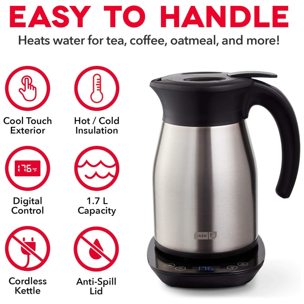 Chaleira Elétrica 1.7L sem fio aço inoxidável DASH DETK300GBSS04 Prateado