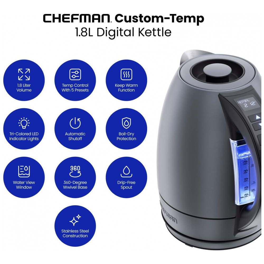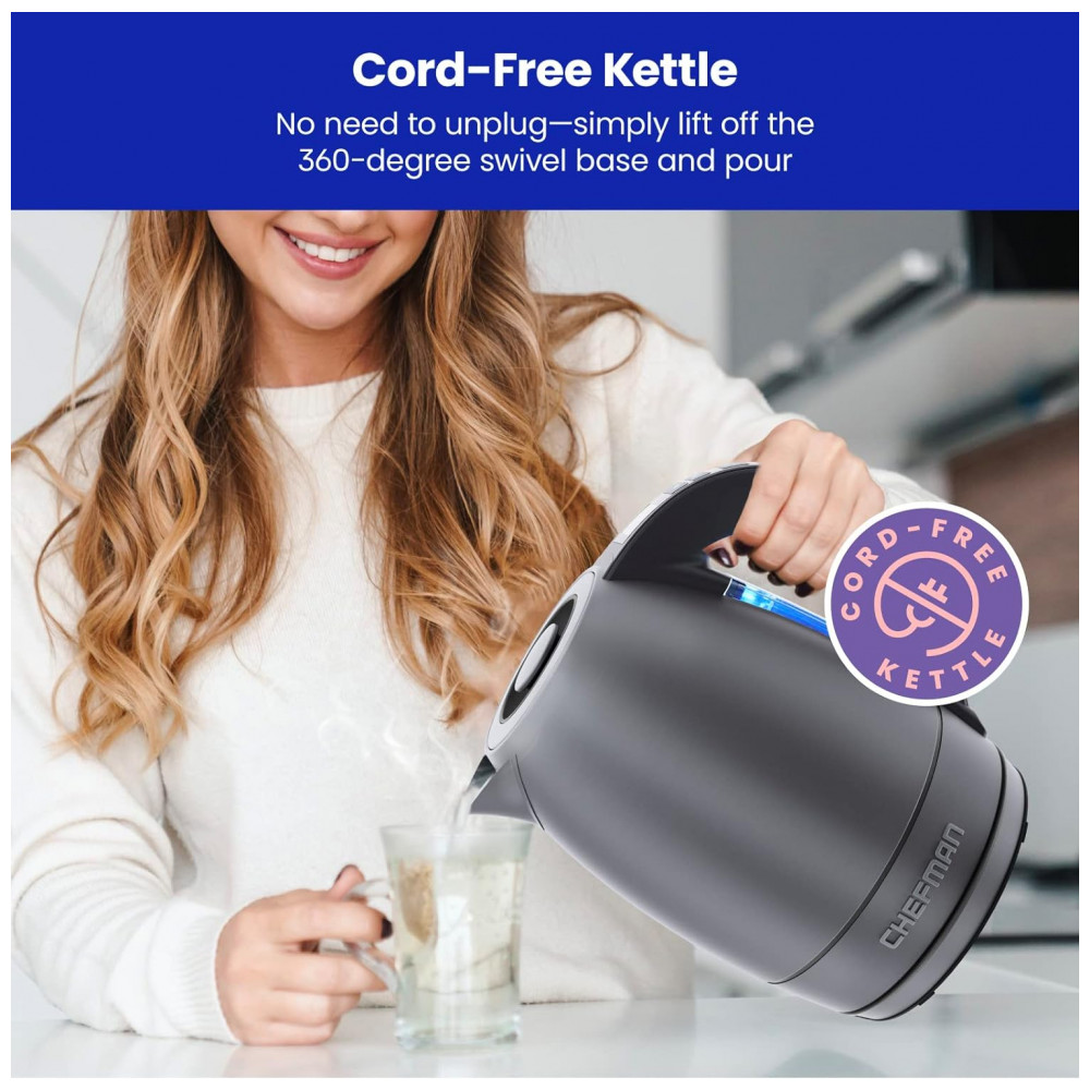 Chefman chaleiras fervem água mais rápido Ferva a água em apenas 3 minutos para tomar chá, chocolate quente, derramar sobre o café e outras bebidas quentes.