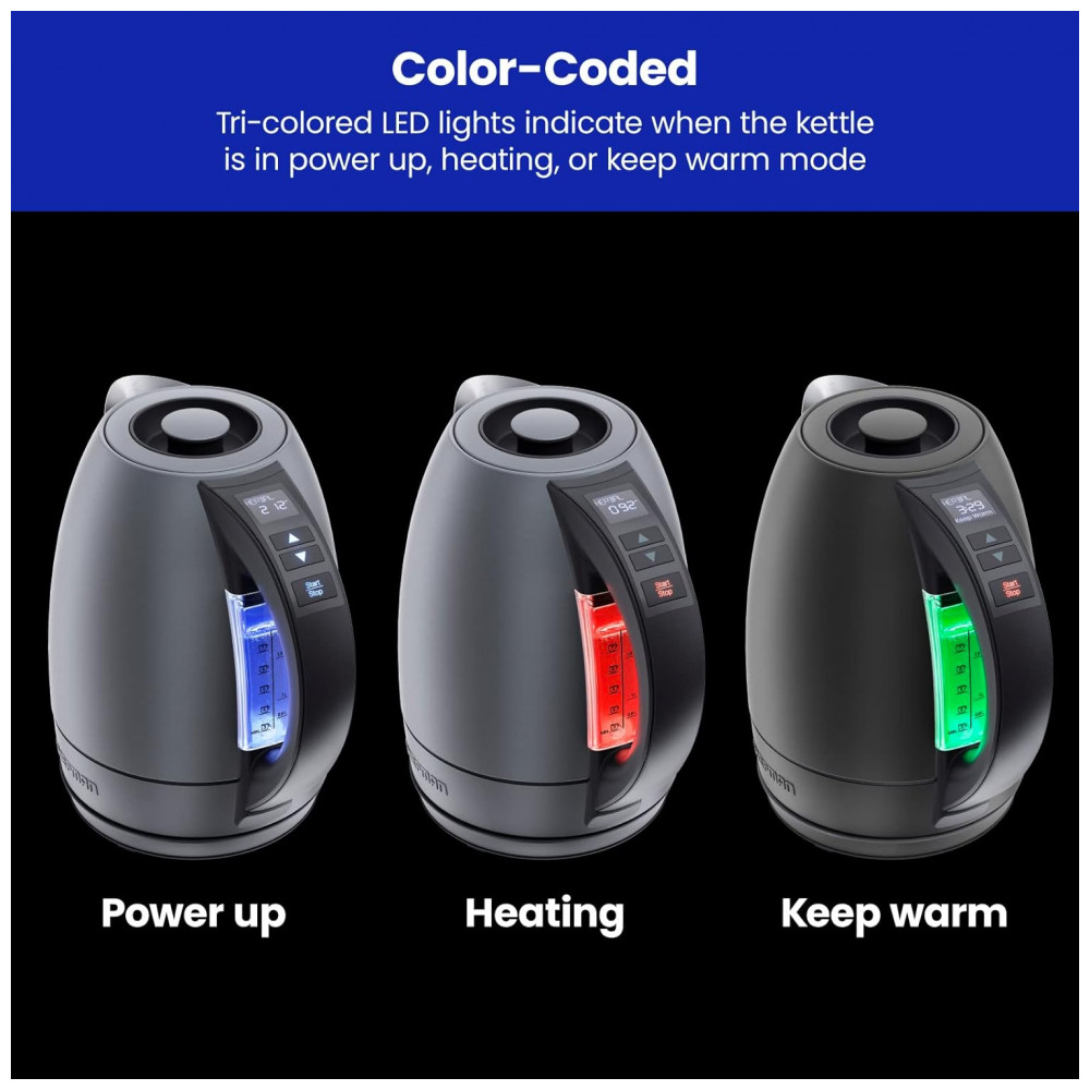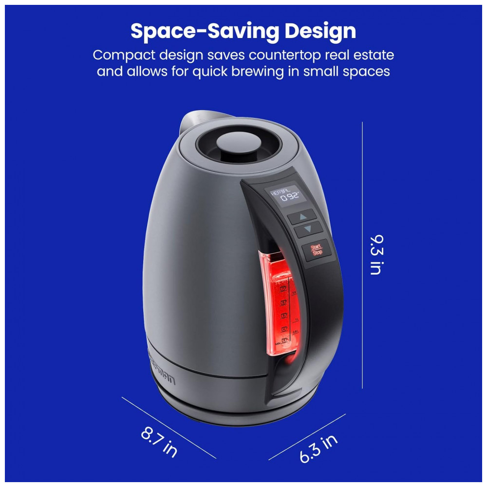 TEMPO PERSONALIZADO: Defina sua temperatura ideal ou escolha entre 5 predefinições, incluindo Delicado 71C, Verde 79C Branco 85C e ferva 100C com um controle digital intuitivo na alça para aquecer a água até a temperatura perfeita.