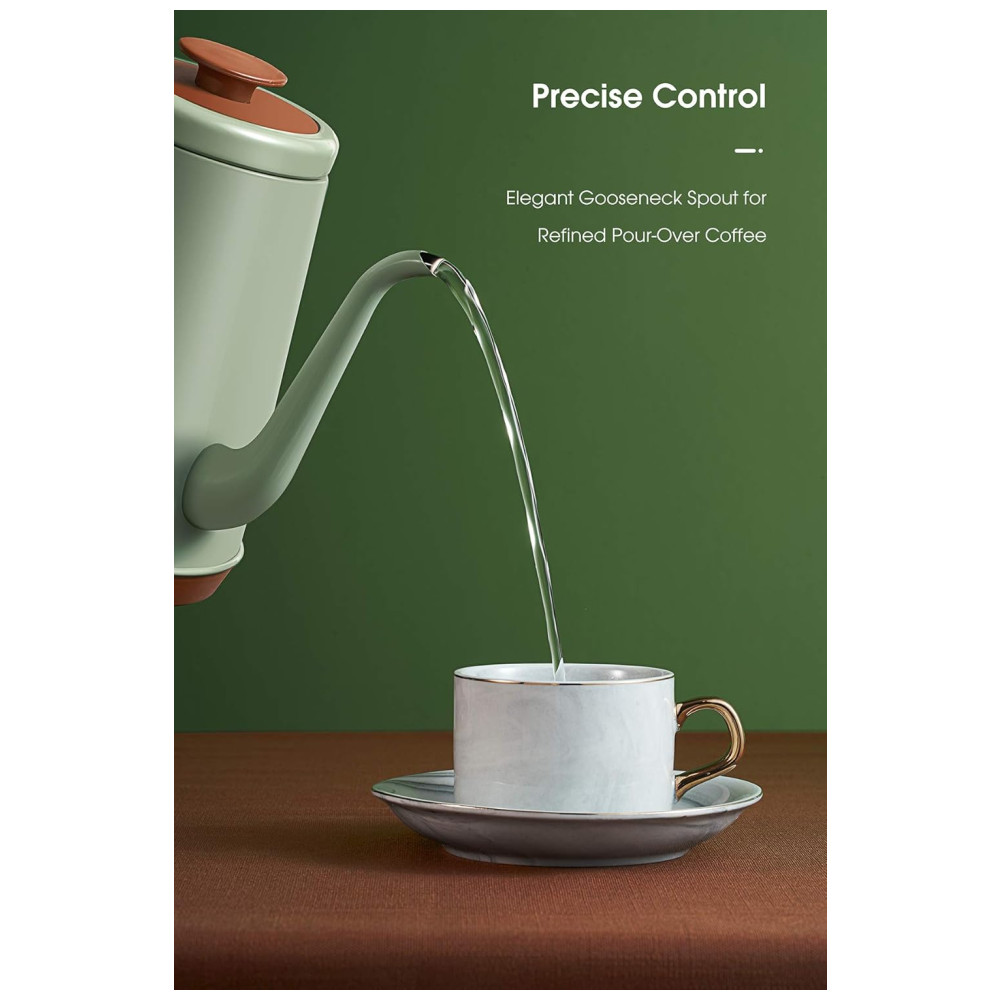 Chaleira Gooseneck elegante para controle preciso DmofwHi chaleira elétrica gooseneck vem com um bico de pescoço de ganso projetado com precisão que fornece um fluxo de água em cascata com controle total em todos os ângulos de vazamento. Graças ao bico de ganso, faça com que a chaleira elétrica DmofwHi seja uma excelente opção sobre a chaleira para o seu café e chá todos os dias.