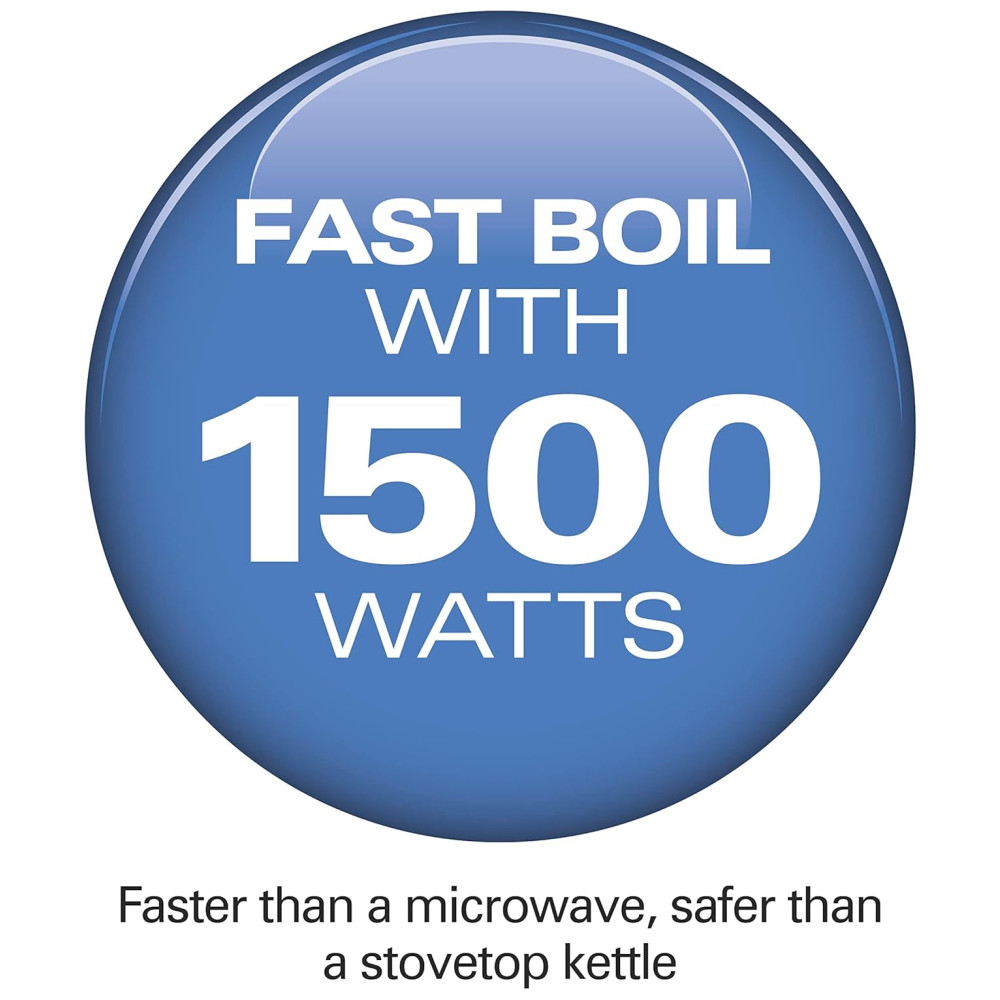 Com a chaleira elétrica Hamilton Beach de 1 litro, a caldeira a água e o aquecedor de chá com indicador LED, proteção de desligamento automático e fervura a seco, é rápido e fácil saborear chá, café transbordando, chocolate quente, sopas e muito mais em minutos, sem comprometendo um espaço valioso no balcão. Além disso, possui um design atraente que fica ótimo em qualquer cozinha. Embora seja compacta, esta chaleira ainda possui muitos recursos. Com 1500 watts, pode ferver a água mais rapidamente que um micro ondas e é mais do que uma chaleira. Quando a água ferver, a chaleira desliga se automaticamente, o que ajuda a impedir que ela ferva. A chaleira se ergue da base sem o fio, fazendo com que o serviço à mesa fique estourado. Uma alça fria, tampa com botão de pressão e bico de fácil derramamento facilitam o enchimento e a manutenção, maximizando a funcionalidade desta chaleira poderosa, mas que economiza espaço