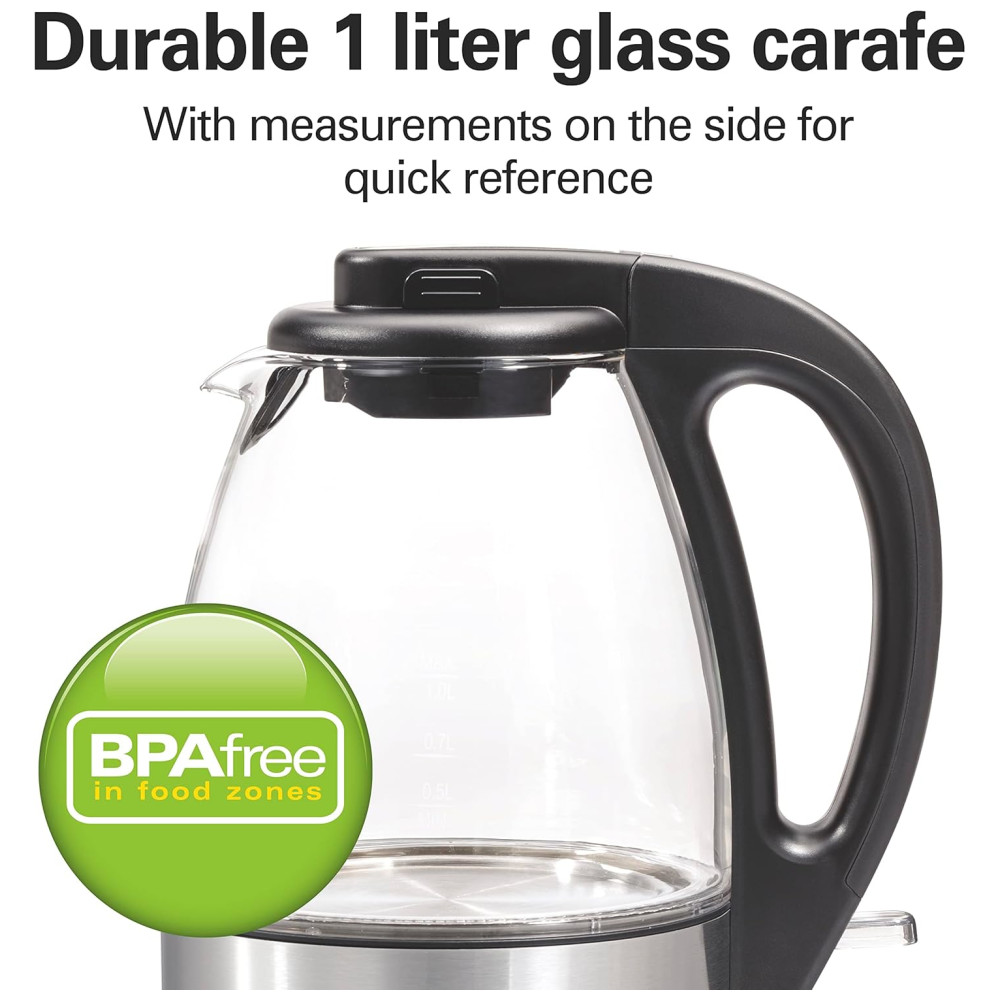 Chaleira Elétrica 1L Aço Inoxidável Vidro Transparente 110v HAMILTON BEACH 40930 Prateado