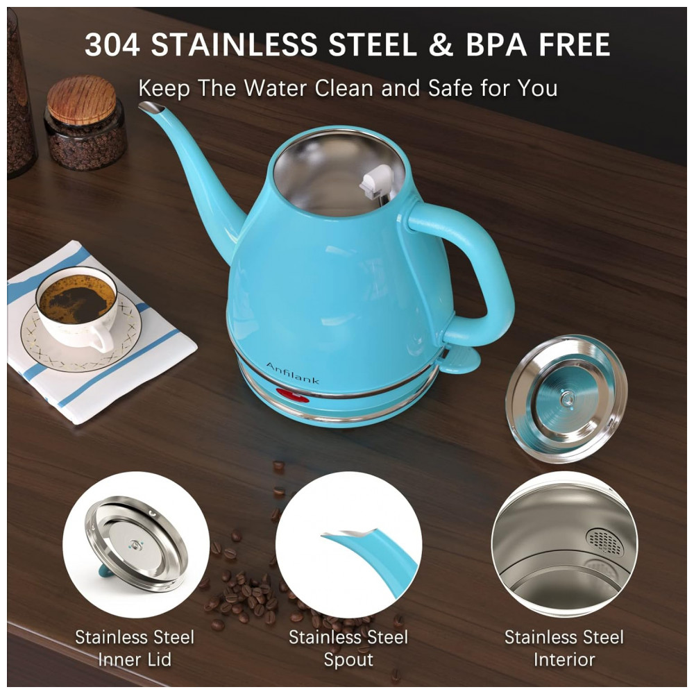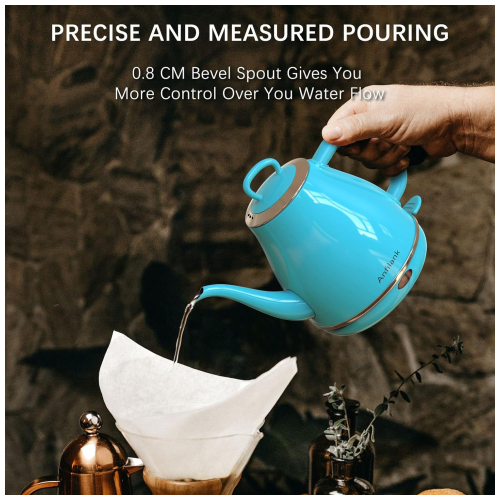 VERTER PRECISO E MEDIDO O vazamento preciso e o design à prova de vazamentos evitam qualquer vazamento ao despejar. A chaleira elétrica gooseneck da Anfilank tem um longo bico gooseneck, bico de precisão de permite que a água flua de forma constante, lenta, responsiva e previsível para garantir o melhor sabor quando derramado sobre café ou chá. Uma construção de corpo equilibrada e alça resistente ao calor incentivam um tempo de derramamento mais confortável e mais longo. Melhor para preparar café e chá.