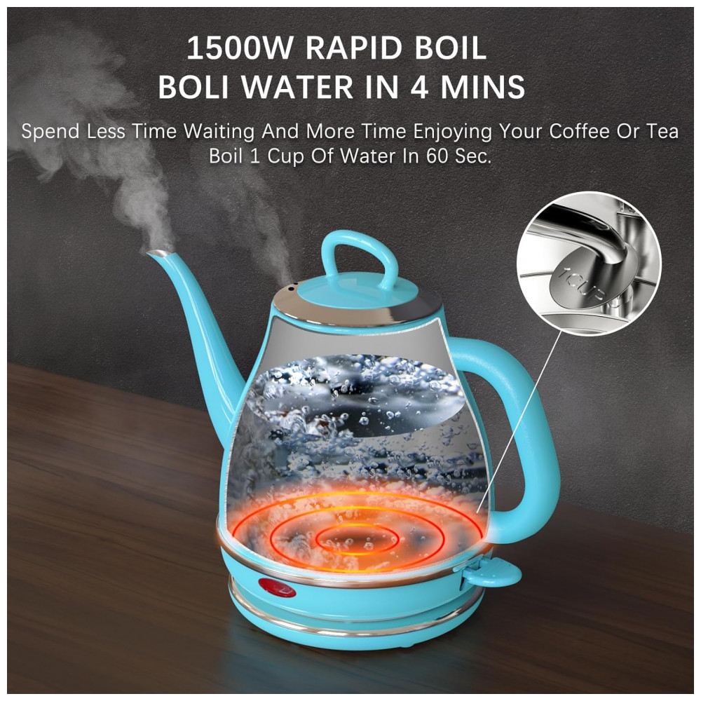 AQUECIMENTO RÁPIDO DE 1500 W Fácil de usar, controles de um botão. Basta conectá lo, encher o pescoço de ganso da chaleira com a quantidade de água até a linha de enchimento e você terá fervido 1 litro de água em 5 minutos. Aquecimento rápido e desligamento automático desta chaleira elétrica pescoço de ganso, tornando seu chá matinal, aveia, café francês e qualquer outra coisa que exija água quente, mais fácil e rápido.