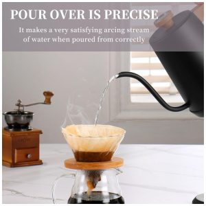 A chaleira elétrica de pescoço de ganso foi projetada para um fluxo de água poderoso e preciso para o fluxo de vazamento, perfeito para o gotejamento manual. A alça é confortável e fácil de segurar em qualquer ângulo. A água quente flui suave e limpa do bico, permitindo direcionar o fluxo de água exatamente para onde você deseja.