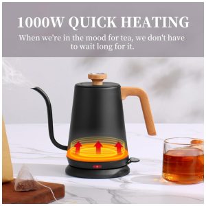 1000W Aquecimento rápido Os 1000W de energia permitem que uma chaleira elétrica de água quente de 1 litro aqueça rapidamente, fervendo uma panela de 1,0L em apenas 5 minutos. Com capacidade para 1000 ml, esta chaleira elétrica é perfeita para diferentes bebidas quentes da família na vida cotidiana. Com a chaleira elétrica silenciosa, você pode aquecer a água pela manhã sem perturbar sua família.