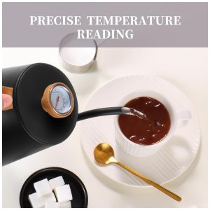 Termômetro embutido: O termômetro on lid mostra a temperatura da água. O termômetro de chaleira elétrica de pescoço de ganso mostra a temperatura à medida que aumenta e funciona bem se você estiver tentando fazer uma bebida que deve ser um pouco mais fria que a temperatura de ebulição. Esse recurso exclusivo ajuda você a obter a temperatura exata desejada para o café, chá ou leite.
